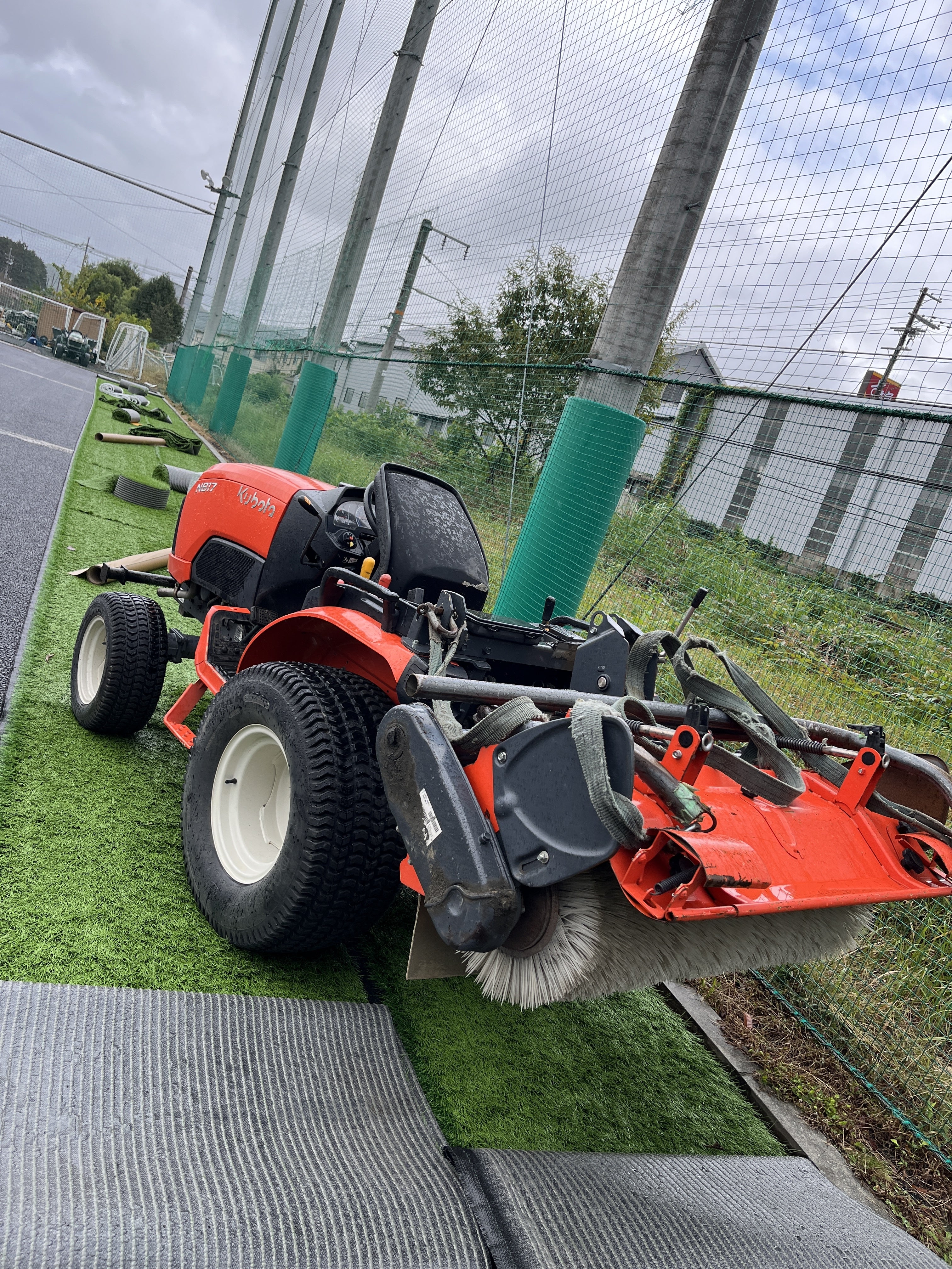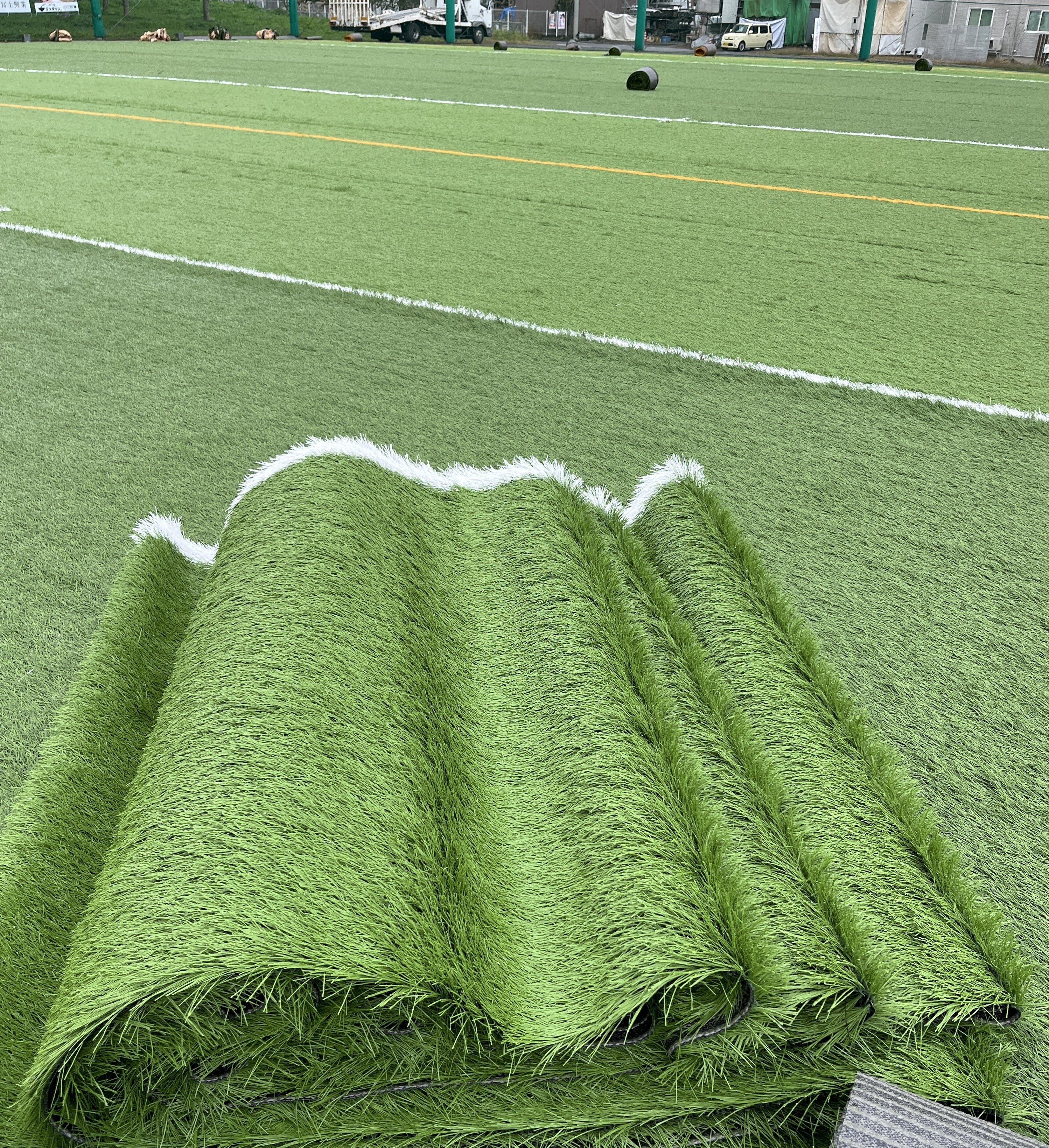 重量ある人工芝を楽々運んでいました。