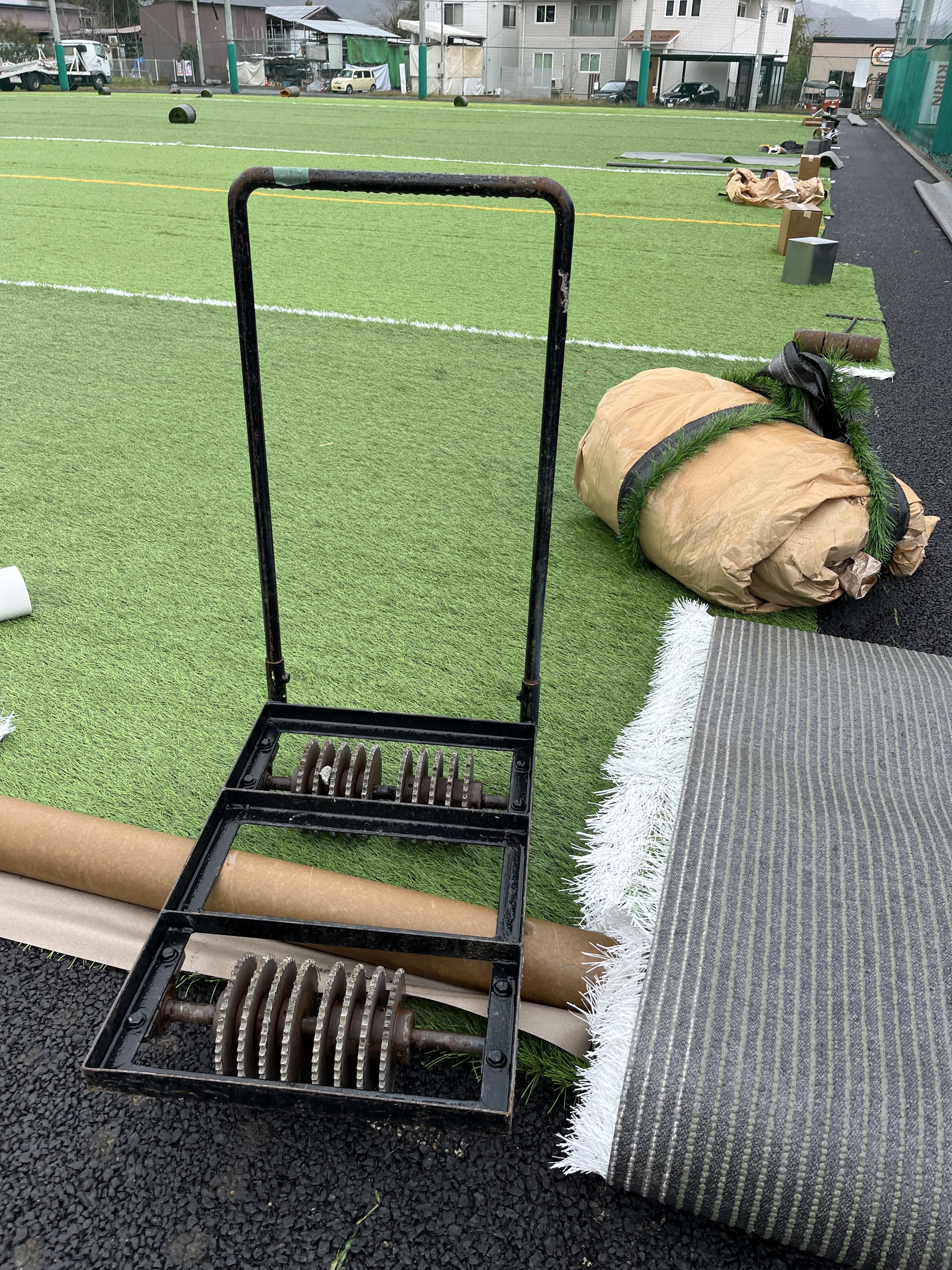 なので今日は作業のお知らせが出来ないので、現場に置いてある人工芝貼り付けに欠かせない道具の紹介でもしようかな…!