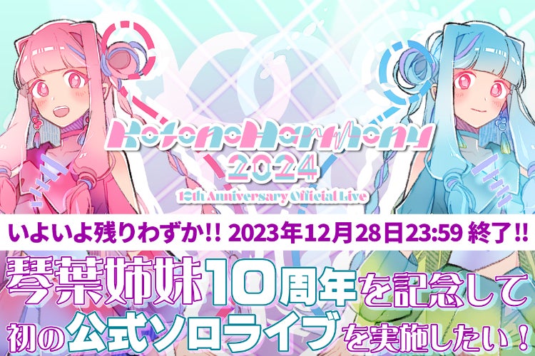 是非琴葉姉妹の10周年記念ライブ「Kotono Harmony 2024」実現に向けて、皆様のご協力、ご支援お願いいたします!