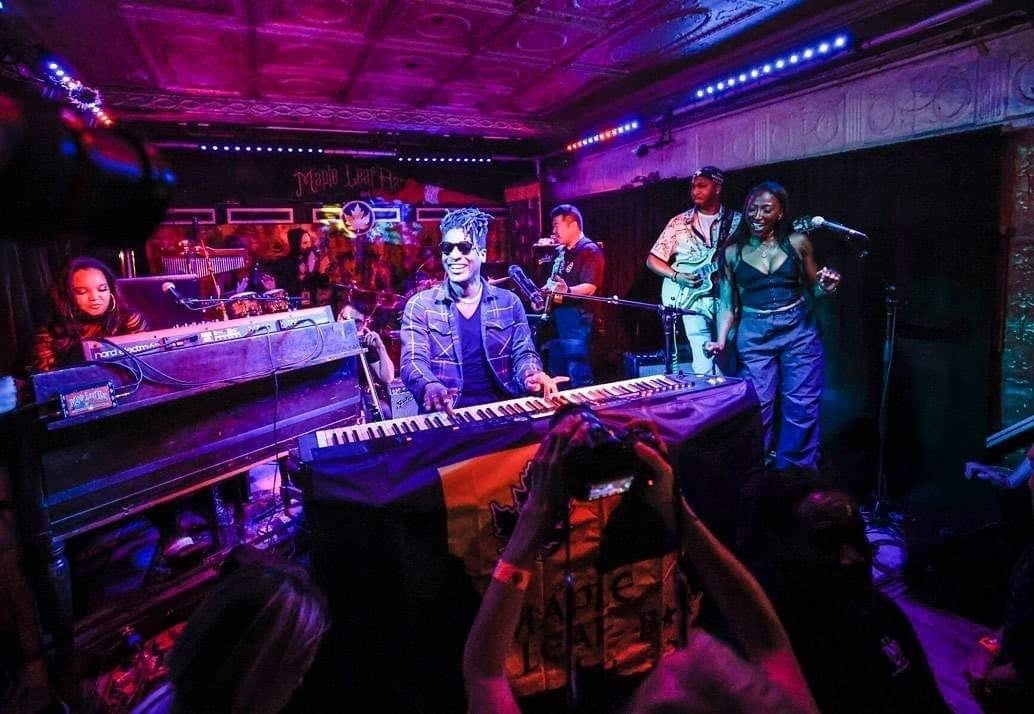 ニューオリンズジャズフェスの前日に行われたシークレットサプライズライブの様子。右から3人目がNori。当日の朝ラジオで一度だけの告知で、チケットは5分で即完売した。