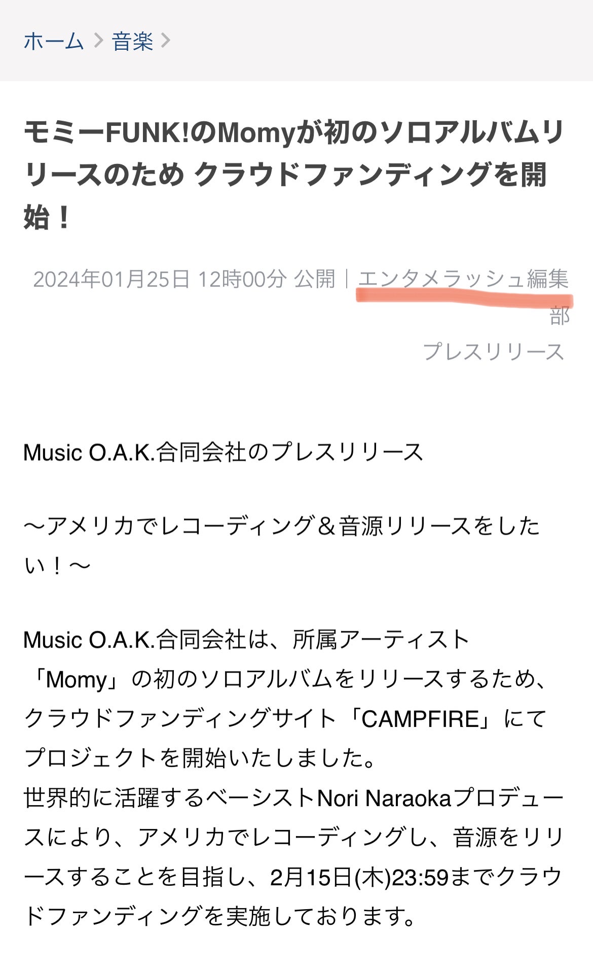 本日、本プロジェクトのクラウドファンディングの情報が、NEWSRELEA.SE様とエンタメラッシュ様の媒体にニュースリリースとして掲載されました!ご掲載ありがとうございます!!