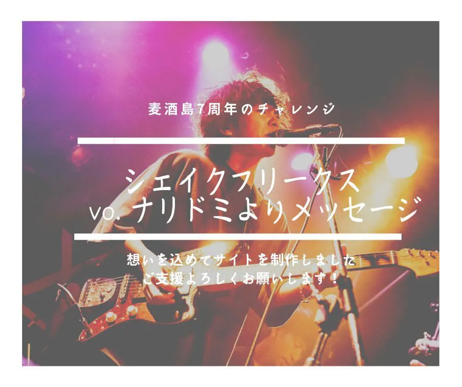 本日は現在神戸でライブ中のシェイクフリークスのボーカル、ナリドミさんよりメッセージを頂いたので添付させていただきます!!