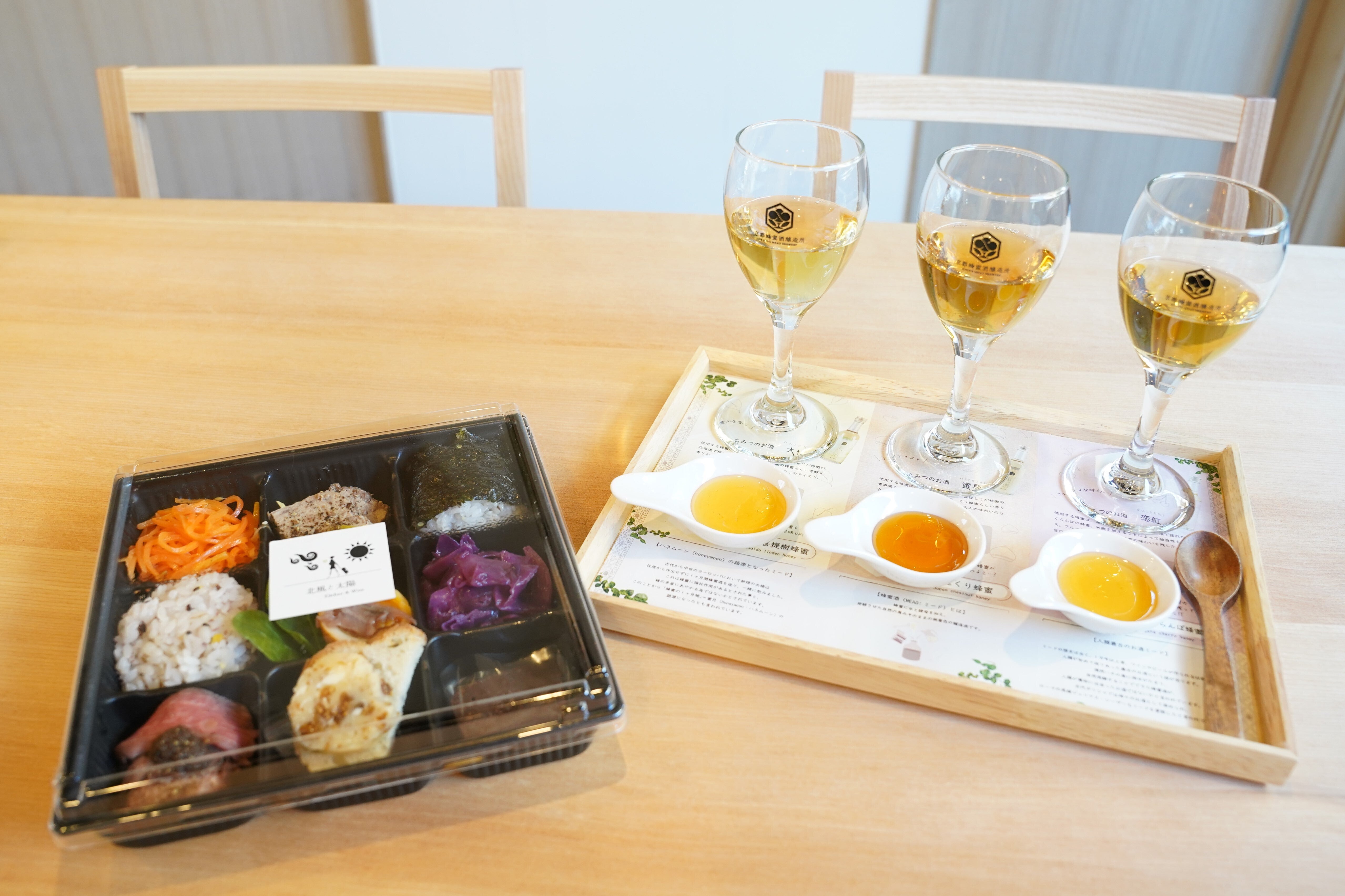 京都市内でミードを取り扱っていただいている「北風と太陽」さんにご用意していただいたミードに合うお料理とともに、ミードの飲み比べやフードペアリング等をお楽しみいただきました。