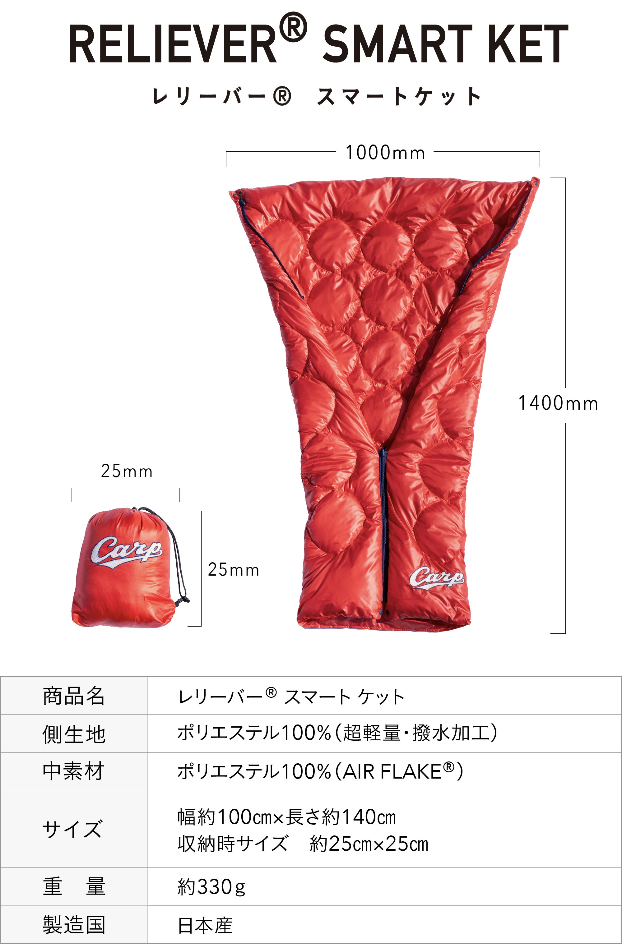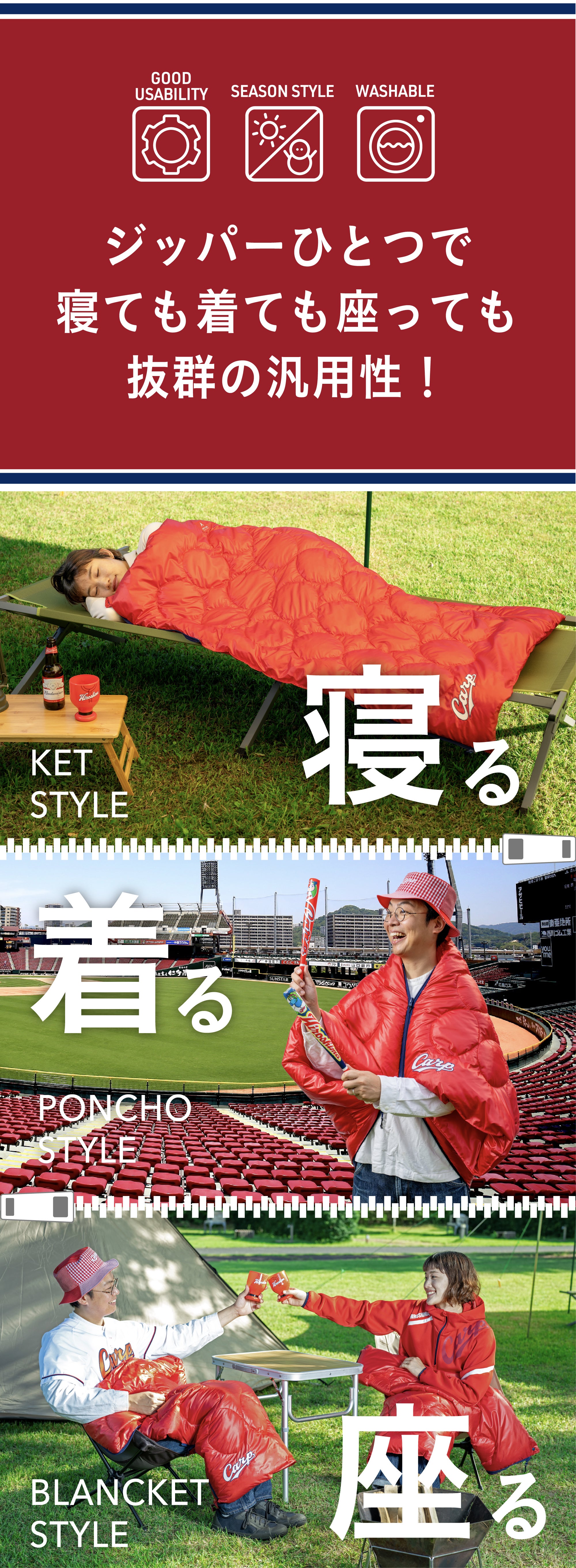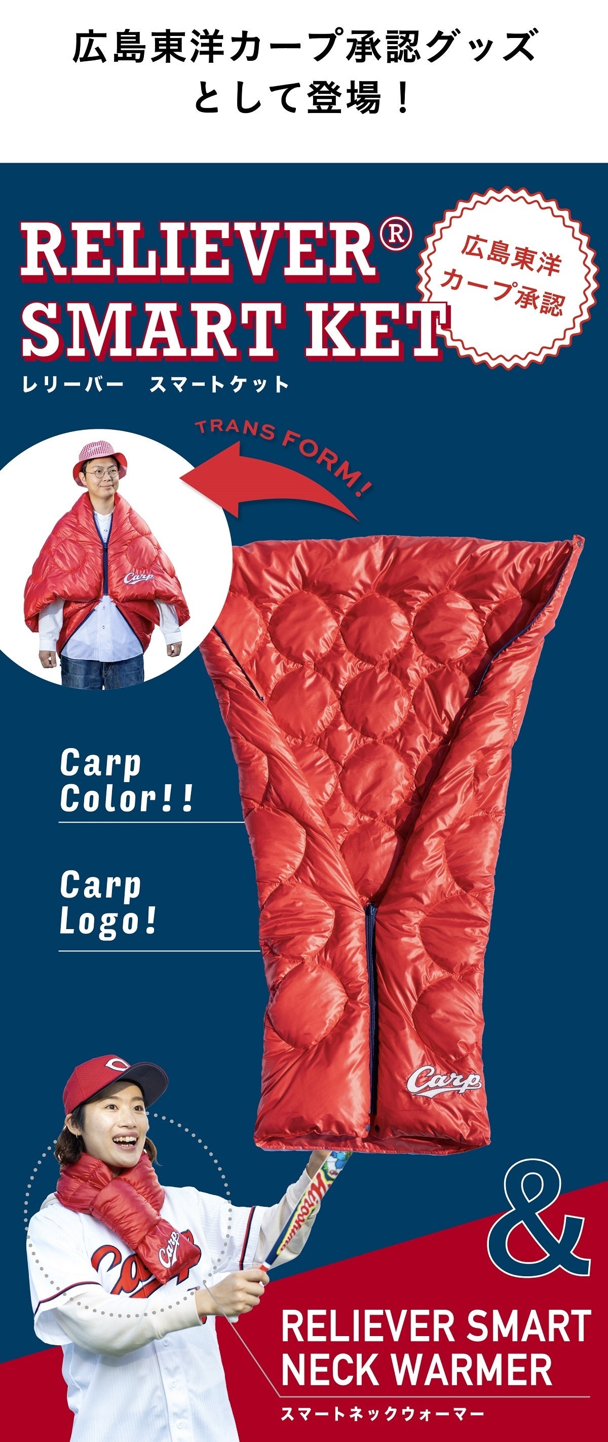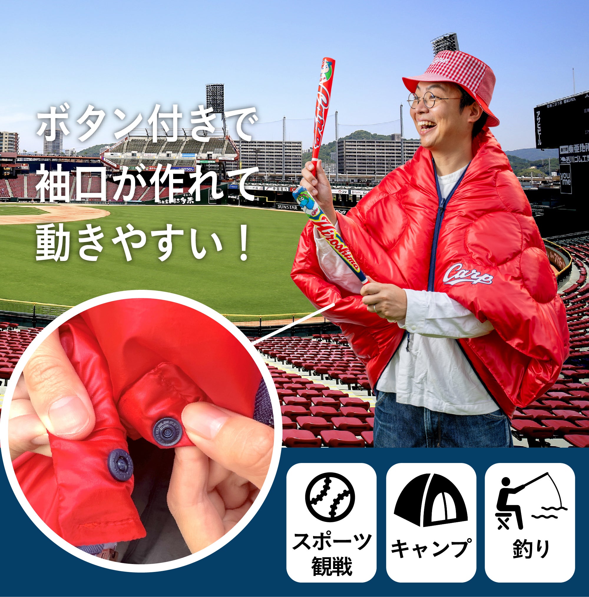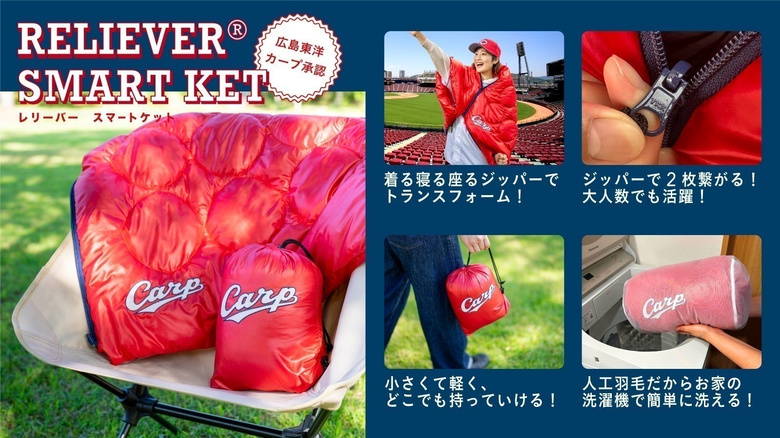 とっても軽く、暖かく、どこでも便利に使える今までにないアウトドアギアで、カープ全力応援!!