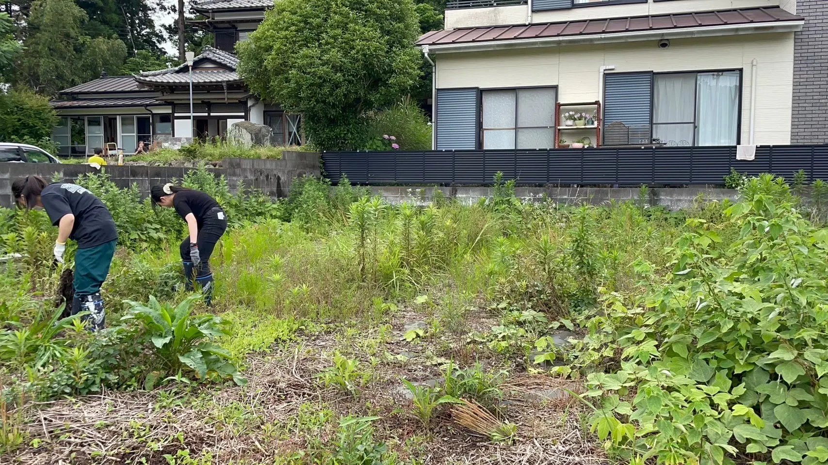 長い間使われていなかった空き家の敷地を使うので、まずは草刈から地道に実施しました…