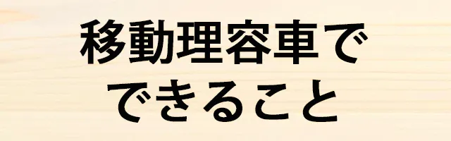 車の中にシャンプー台を常設し、流す用の温水も準備します。それによりシャンプーをすることが可能になります。それに伴い、パーマやカラーといった施術も可能になり、理容室と同様におしゃれを楽しむことができます。