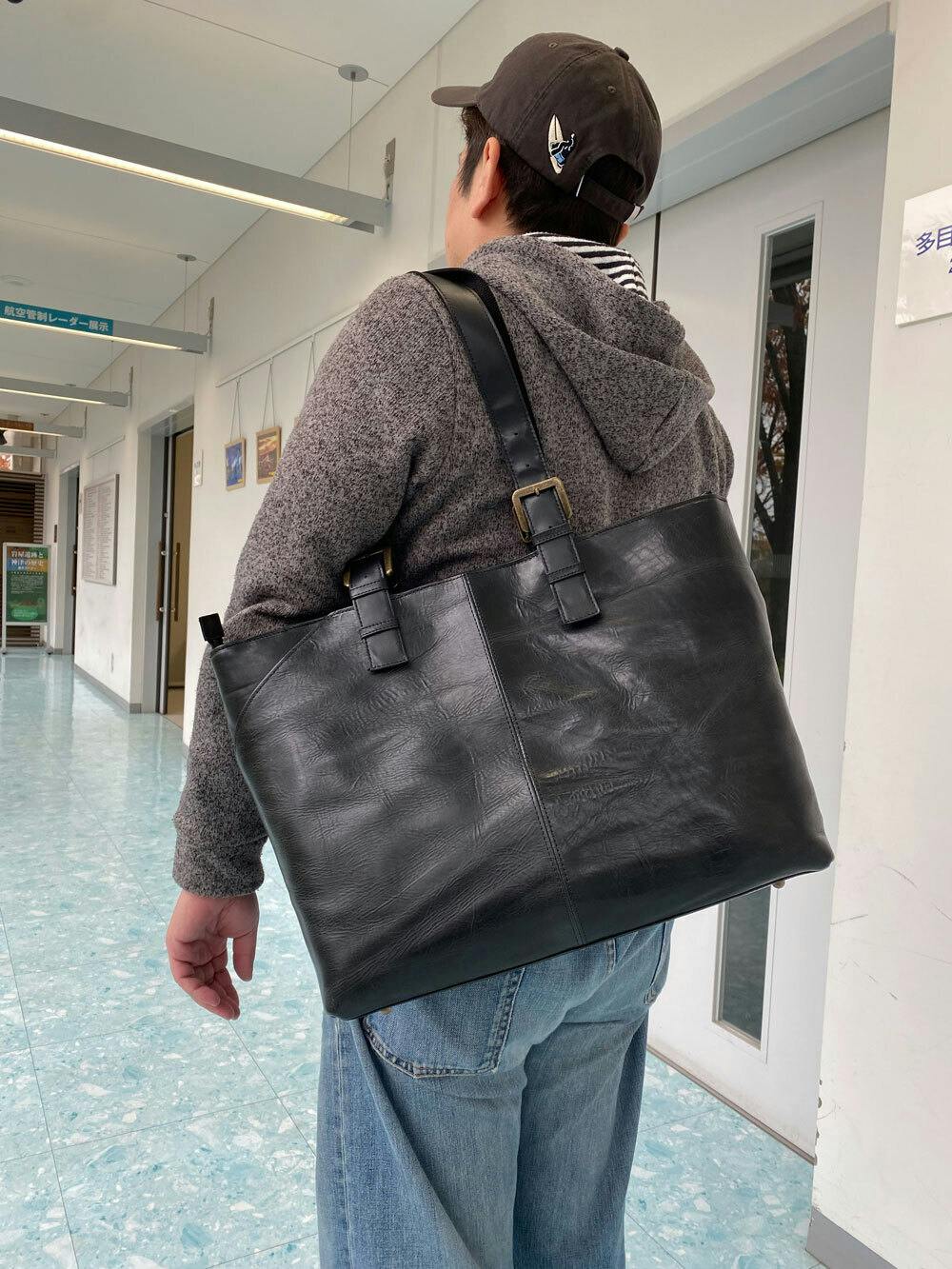 一般的なブリーフケースといえばナイロン製がほとんどで、今や百貨店やセレクトショップでもなかなか牛革製のものを見ることが少なくなりました。今回のバッグは素材にもこだわり、上品なだけでなくタフな雰囲気も兼ね備えました。