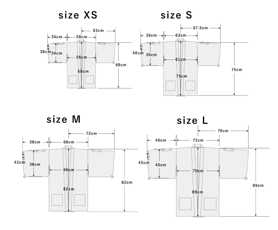 丈は着る人によって九分丈〜八分丈になったときに綺麗に見えるデザインをしています。