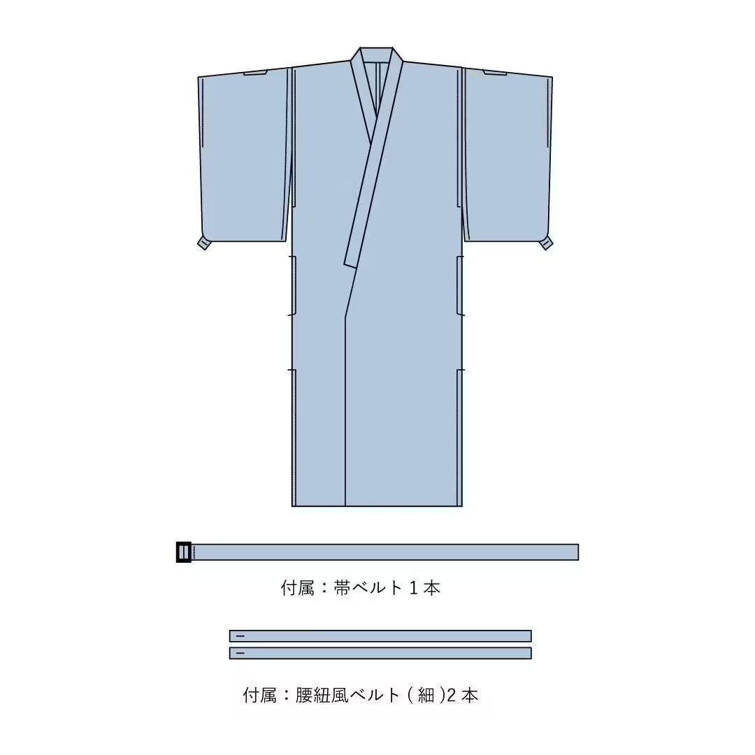 女性着物の特徴の身八つ口の機構と、男性着物で使う角帯のようなベルトを採用。暑い時期にも風通しがよく、締め付けの少ない快適な着心地を実現しました。