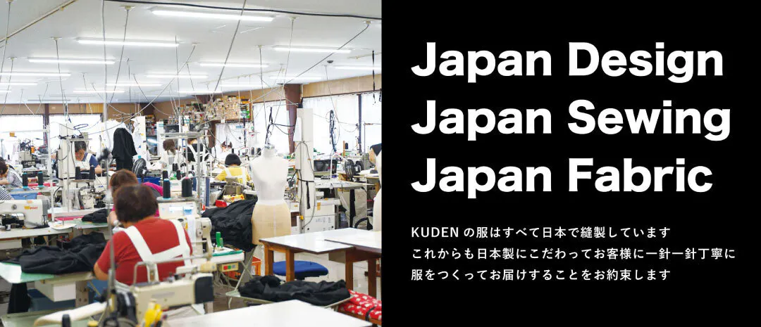 KUDENは国内海外の着物をいつか着てみたい、着物は着られるけど忙しくてなかなか着物を着られない人の為に”着物を愛する人のための洋服” を創る和モードブランドで、日本国内の生地と縫製にとことんこだわり、着物の楽しみや魅力をどうやったら洋服で再現できるかを追求しています。