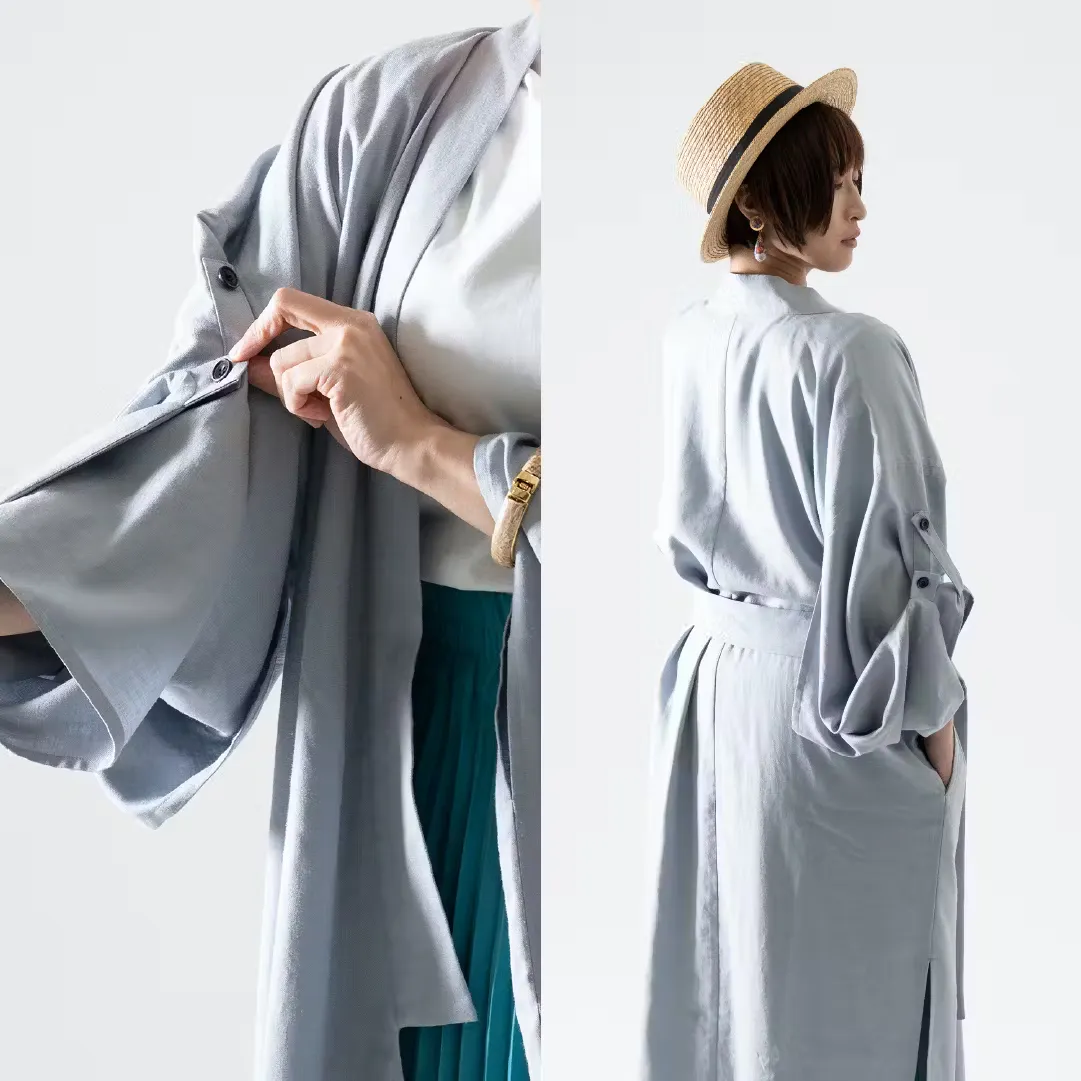 好評だったKimono Gownをトレンチコートの生地で作ったら、トレンチコートとしても着物コートとしても面白いのではないか?という意見から発案しました。