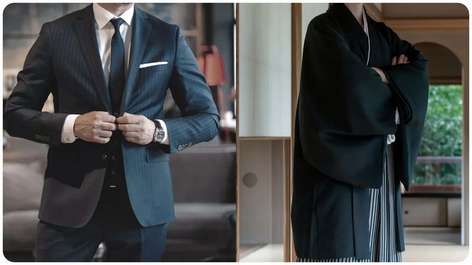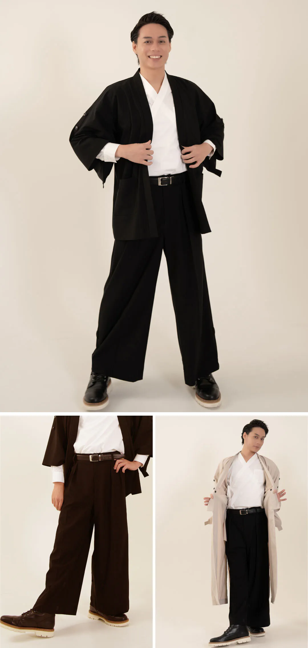 今日は和のセットアップのストレッチジャケットと袴パンツを僕自身が履いて、オススメポイントをご紹介します。