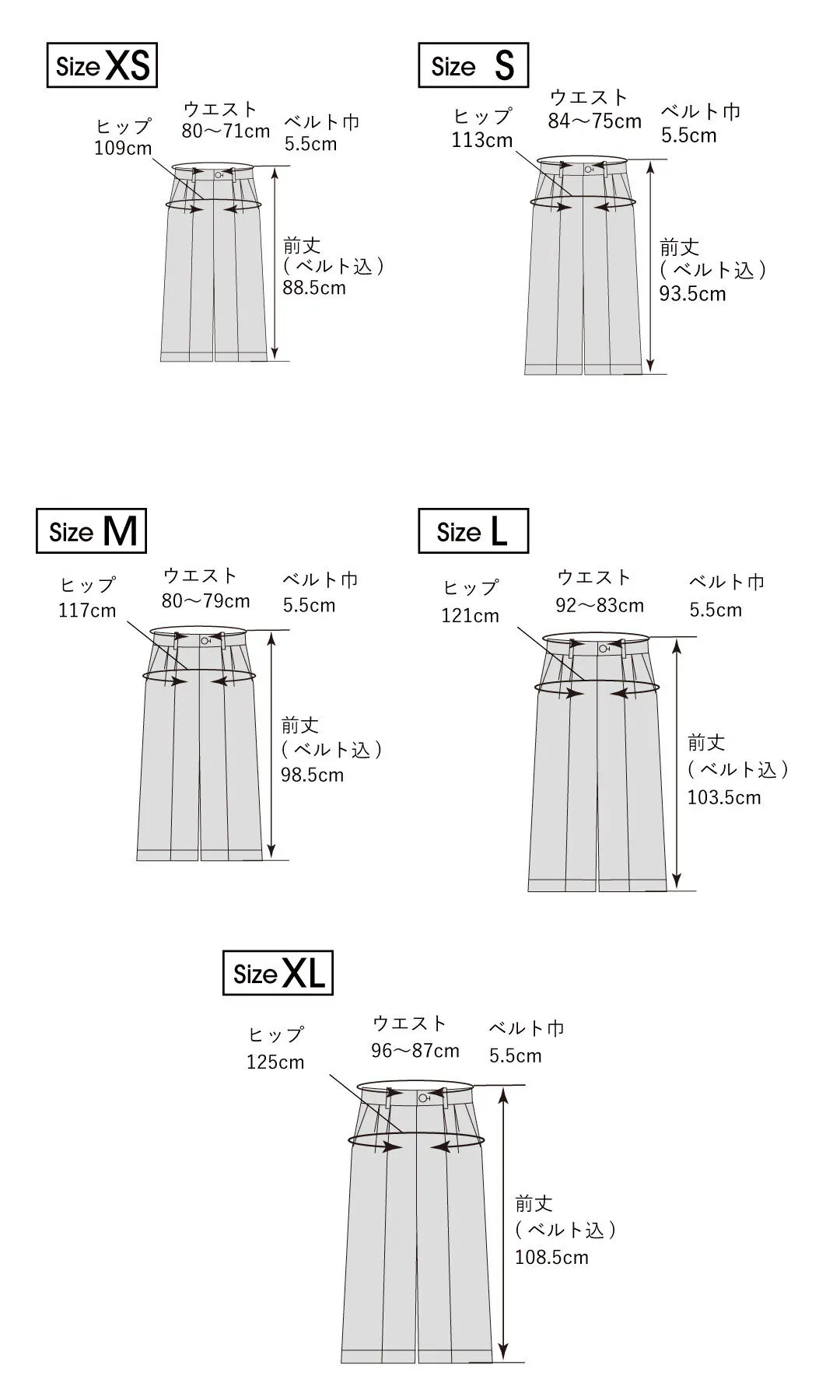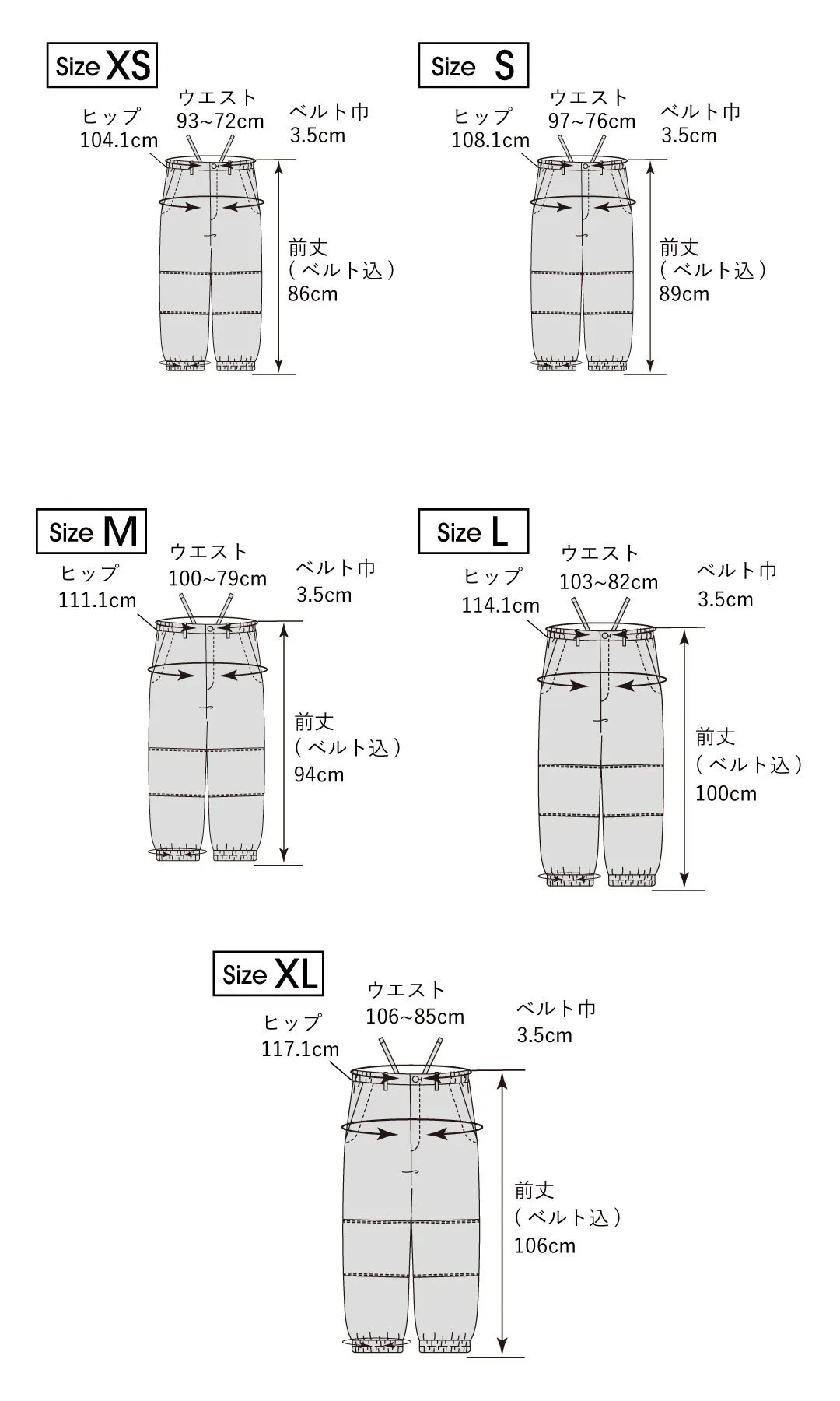サイズ:XS、S、M、L、XL