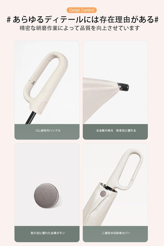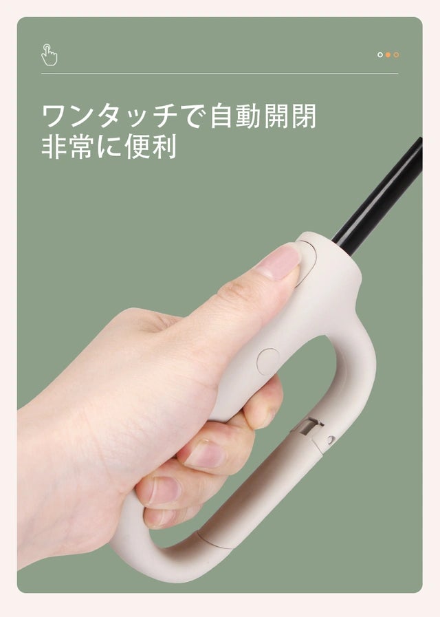 本商品の傘柄は、ロック形状で、マット加工デザインで握り心地が良く、指が滑り落ちることを防ぎます。傘柄にはワンタッチ機能があり、非常に便利です。
