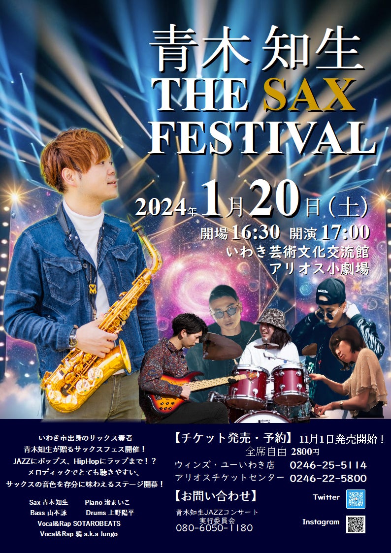 2024年1月20日に故郷である福島県いわき市の「いわき文化交流館アリオス」にて、自身のサックスフェスを開催する運びとなりました。