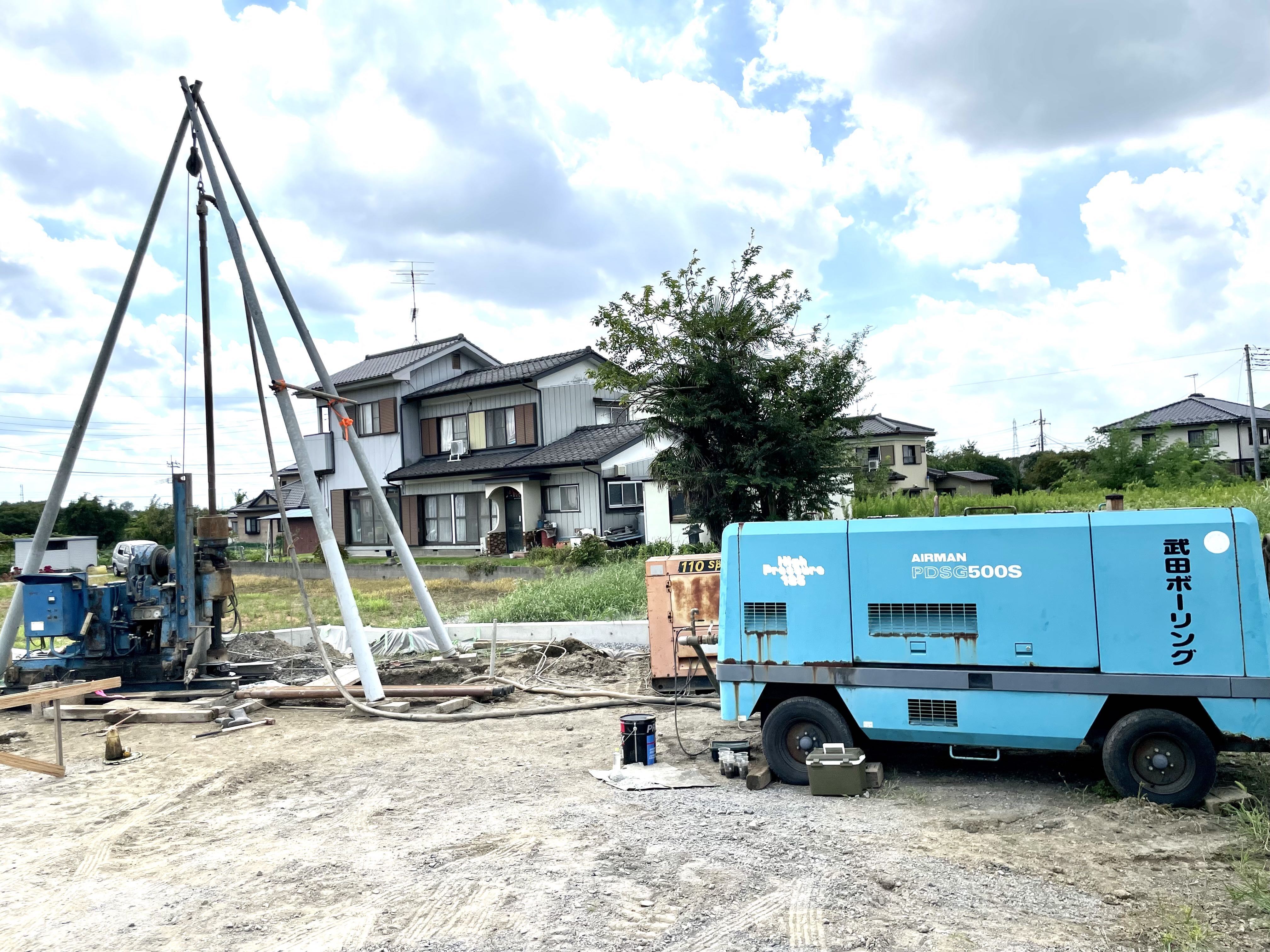 筑波山麓の自然水を求めて約1ヶ月かけて約90メートル近くまで強力な動力を持つボーリングマシンを使用し、ボーリングロッドの先端に取り付けたビットを回転させ掘削しました。