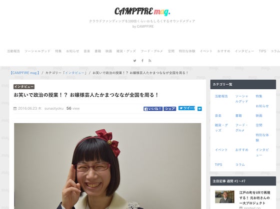 CAMPFIRE様の【CAMPFIRE mag.】にてプロジェクトについてインタビューしていただきました。