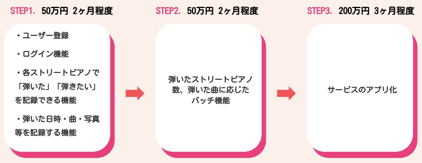 また、ご支援いただいた金額に応じて、STEP2の費用や、サービスを広めるためのマーケティング費用などに、当てたいと考えています。