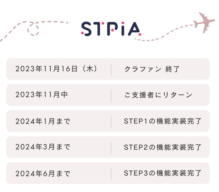 2023/11/04 10:30クラウドファンディングを開始して、初めてご支援いただきました!ご支援いただきまして、ありがとうございます!残り12日間ありますので、全力で駆け抜けたいと思います!どうぞ、ご支援・応援のほど、宜しくお願い致します!https://stpia.jp/ もっと見る
