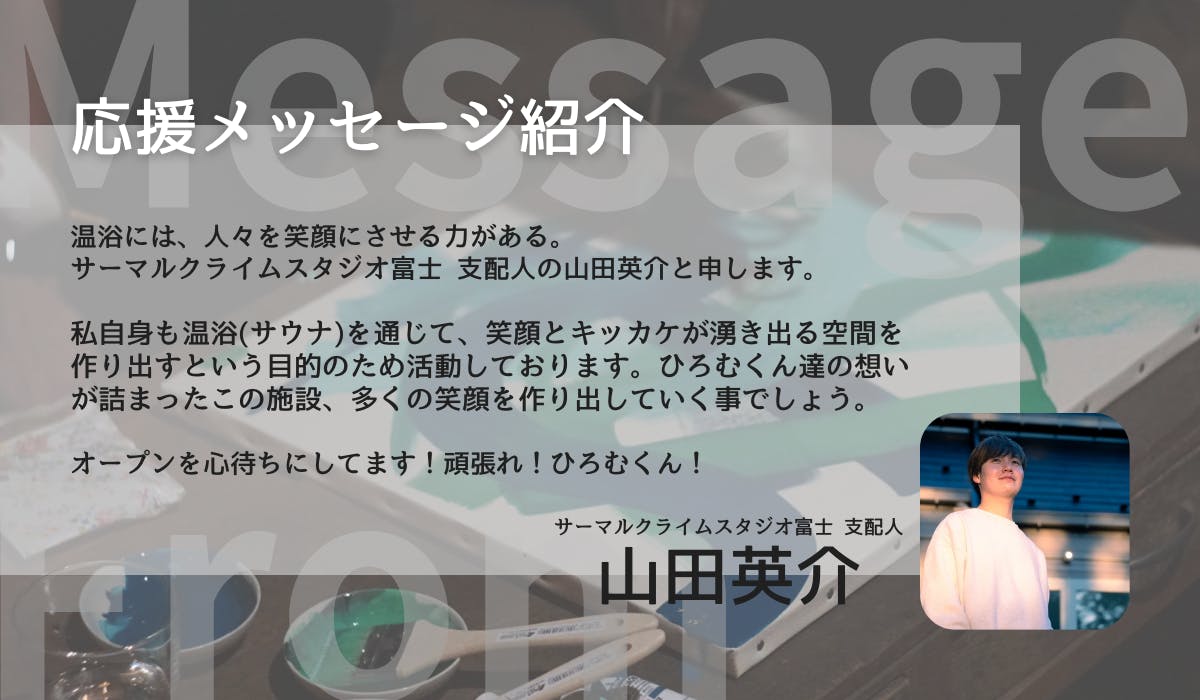 今回の私たちのプロジェクトは、たくさんの方々に支えられています。そんな「応援団」の皆さんからメッセージをいただきましたので、ここでご紹介させてください。
