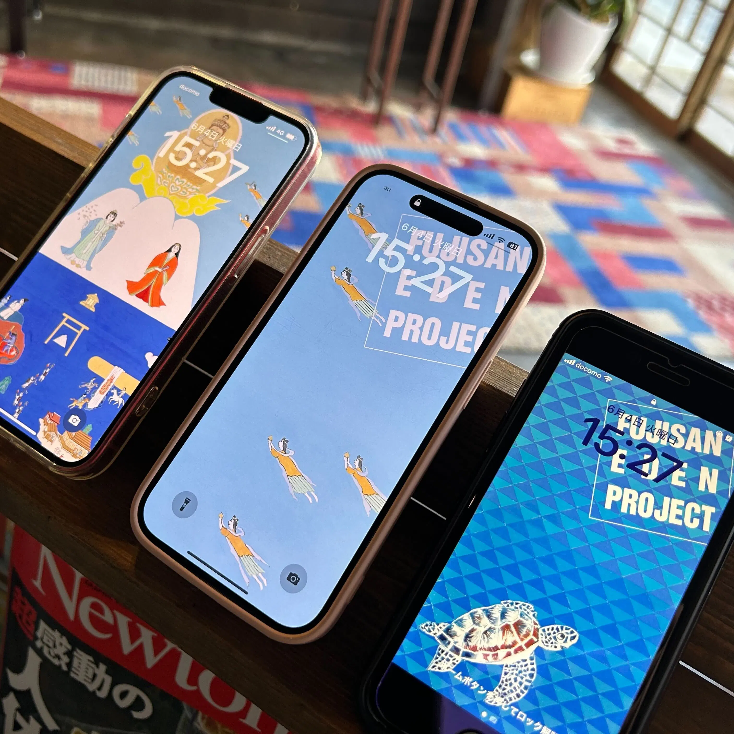 2024/06/04 18:45こんにちは!富士山絵伝事務局です。ニューヨークアートフェアでの展示という大きな目標を達成してから、早くも2ヶ月が経ちました。初夏のさわやかな風が感じられるこの季節、皆様いかがお過ごしでしょうか?本日は、クラウドファンディング富士山絵伝プロジェクトの返礼品の中から「クラファン限定 待受画面3種セット」をご紹介いたします!こちらのセットは、富士山絵伝3幅目「美しき山を目指す者の巻」のメインに描かれた雄大な富士山のデザインと、じわじわとファンが増え続けている天女と亀のデザインが含まれています。富士山絵伝の中でも印象的な、ひとつひとつ丁寧に描かれた三角形の塗りの重なりで海の水面の煌めきが表現されている背景が、初夏の清涼感を一層引き立てられるかと思います。この待受画面セットをお選びいただいた支援者の皆様が、待受画面を見るたびに楽しんでいただけると嬉しいです。改めまして、ご支援いただき誠にありがとうございました! もっと見る