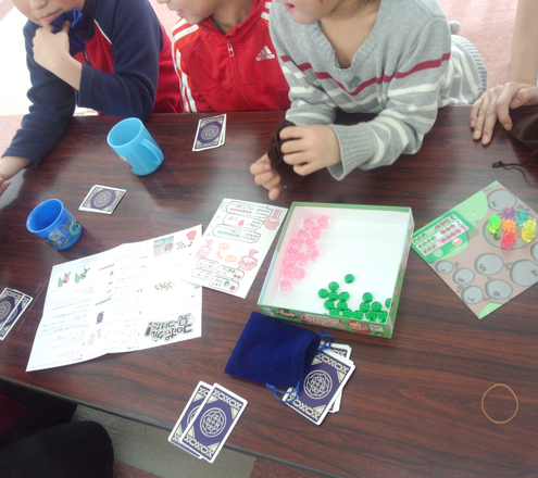 「コロポックル 見~つけた!」は私の三作目のゲームです。 娘も小学生になり、我が家や外で開催されるゲーム会に参加する中で、「子供と一緒に遊べるゲームが欲しい」と思ったのがゲームを作ったきっかけです。 ゲームの概要 「コロポックル」は北海道や樺太などのアイヌ民族に古くから伝わる妖精の名前で、その体は小さく、フキの葉の下に隠れるとされています。(正確にはアイヌではコロポックルを「人」と見なしていますが、民俗学的な詳細は省きます)ゲームはアイヌの神様がコロポックルたちとかくれんぼをする、というテーマで、プレイヤーはコロポックルのチップを7つ集めることを目指します。 チップには「コロポックル(ピンク)」と、「フキ(緑)」の二種類があり、色も材質も異なるので、触るとすぐ分かるようになっています。ゲームは小さな巾着袋に入ったチップを隣のプレイヤーに順に渡す事で進みます。 チップの交換、あるいはカードの効果を使って、コロポックルチップを早く集めたり、フキチップを集めたプレイヤーを脱落させます。 ゲームの特徴 ゲームには子供の好きな要素をふんだんに盛り込んでいます。箱やカードのかわいいイラストは、「ぐるっぐ」さんにデザインをお願いしました。 チップは袋に入れられ、他のプレイヤーからは見えません。またチップ交換では何を渡すか言わないため「秘密にする情報」が多く、考えていることを隠すのが重要です。この「悪いことをしているような背徳感」が小さな子供にはたまらないようです。 もちろんチップを「集める」という作業自体も楽しいですし、使用するアクションはアイヌ語なので、そうした「知らない言葉を叫ぶ」のも子供は大好きです。 ゲームなので勝ち負けはもちろん重要ですが、それだけでは負けた子には不満が残ります。子供と遊んでいると、負けた悔しさで泣いてしまうこともよくあります。そのためには勝敗を重視しないゲームも一つの手ですが、ゲームの中に「楽しいこと」をたくさん詰め込むのも一つの方法です。このゲームは、そうした「楽しい事の詰め合わせ」で作っています。 保育施設と寄付 「コロポックル 見~つけた!」は元々が子供向けに作ったゲームですが、個人制作ゲームのイベントに参加される方はゲーム好きの大人が多く、なかなか子供に情報を届けるのが難しいのが現状です。 まずは日ごろの感謝を込めて、娘の通う小学校の学童保育に寄付させていただいたのですが、これが大人気。 遊びすぎてボロボロになったので、新しく寄付し直したほどでした。 学童保育にゲームを寄付しました 学童にボードゲームを寄付して、その後 その人気を見て、このゲームは今では保育施設への寄付を行っています。下記のリンクは過去に寄付させていただいた先からのレポートです。 「コロポックル 見~つけた!」寄贈レポート : アナログゲーム療育 松本太一様 「コロポックル 見~つけた!」寄贈レポート : 親と子のひろば ルーテル園 アフタースクール 永田 令様 また、今回の熊本地震に際しては、被災地を訪れてボードゲームを寄付するという試みを拝見し、ゲームを寄付させていただきました。 【熊本復興支援】第1回スマイルボードゲームキャラバンの報告 そうした活動は今後も可能な限り続けいければと考えています。 大人向けには とはいえ元々が「娘と一緒に遊びたい」という同期で作っていますので、大人同士でも遊んで楽しいゲームになっていると自負しています。 ゲームとしての戦略性の他にも、「他の人に見られないように、ぎゅっと手を握ってチップを渡す」という点は、むしろパーティー向きです。むさい男ばかりでやる図はあまり美しいモノではないですが・・・ ただし使用している巾着袋は子供向けに小さい物を使っていますので、特に体の大きい方には使いにくい可能性があります。この点はあらかじめご容赦ください。 特典について 今回のプロジェクト中にご注文頂いた方には、イラスト担当の「ぐるっぐ」さんデザインのクリーナークロスを限定特典として付けさせて頂きます。 寄付は引き続き受け付ていますが、寄付を続けるためにもゲーム自体が一定数売れる必要があるのも事実です。新作ゲームのプロジェクトではありますが、これらの作品にもご支援のほどよろしくお願いします。