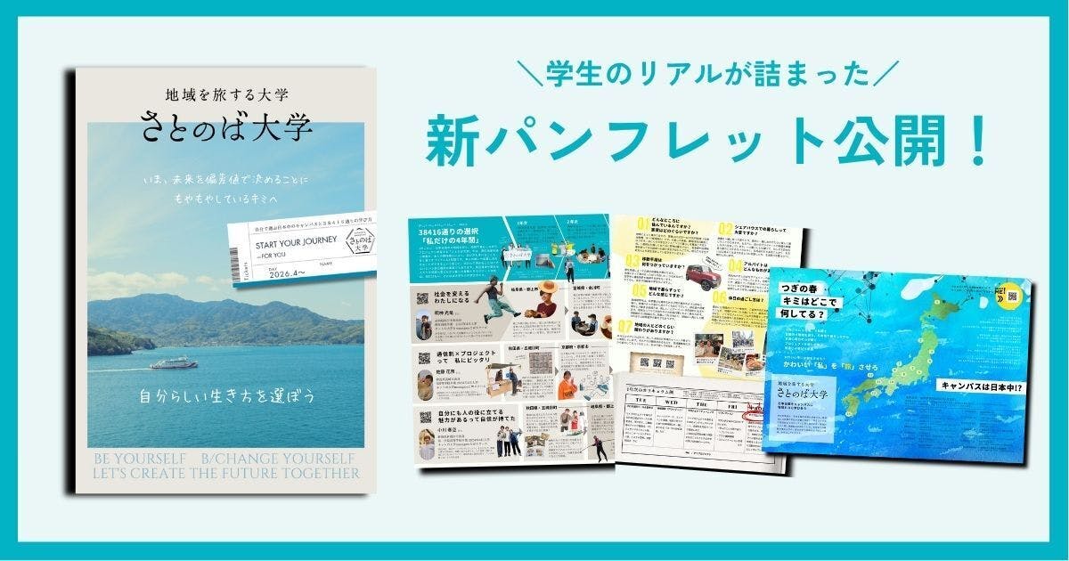 さとのば大学の学生は現在30名程となり、今年度は全国12地域に学生が滞在し学びを深めています。新パンフレットでは、進化してきたさとのば大学の姿や、実際に地域に暮らすさとのば大学のリアルを詰め込みました!