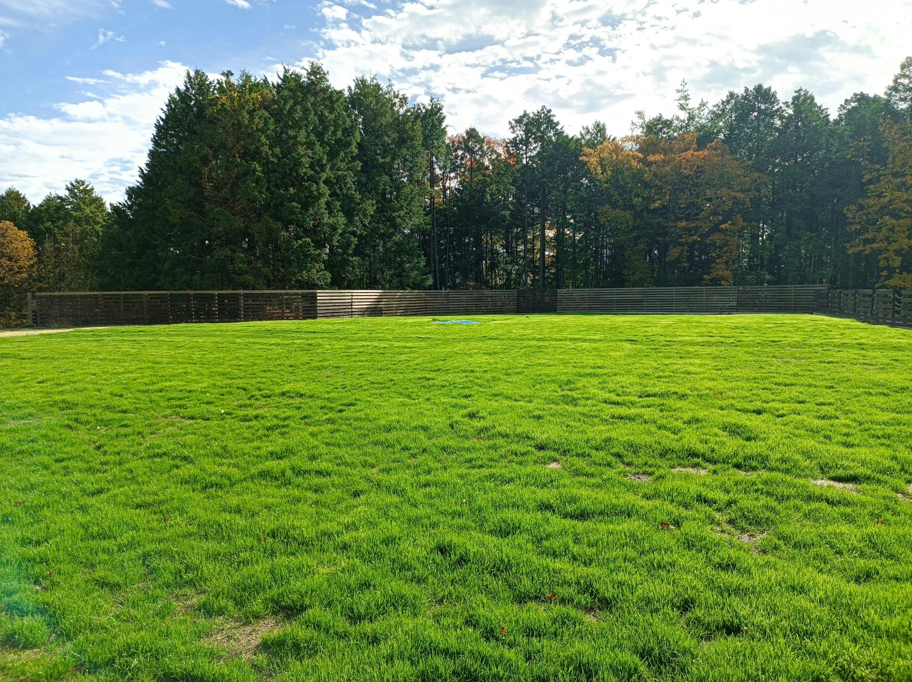 秋の気配と共に、やっとドックランに芝生の種まきする事が出来ました。