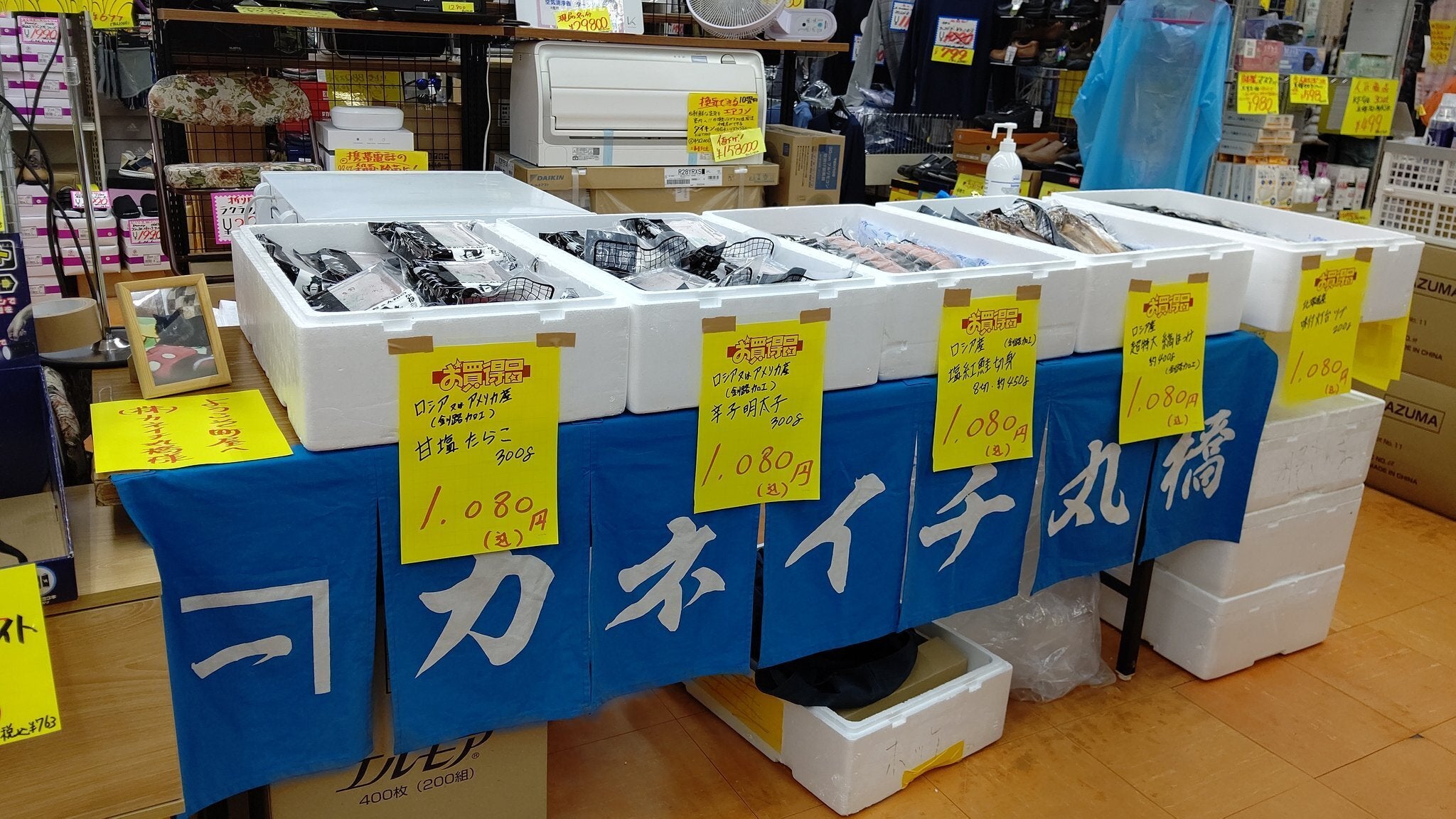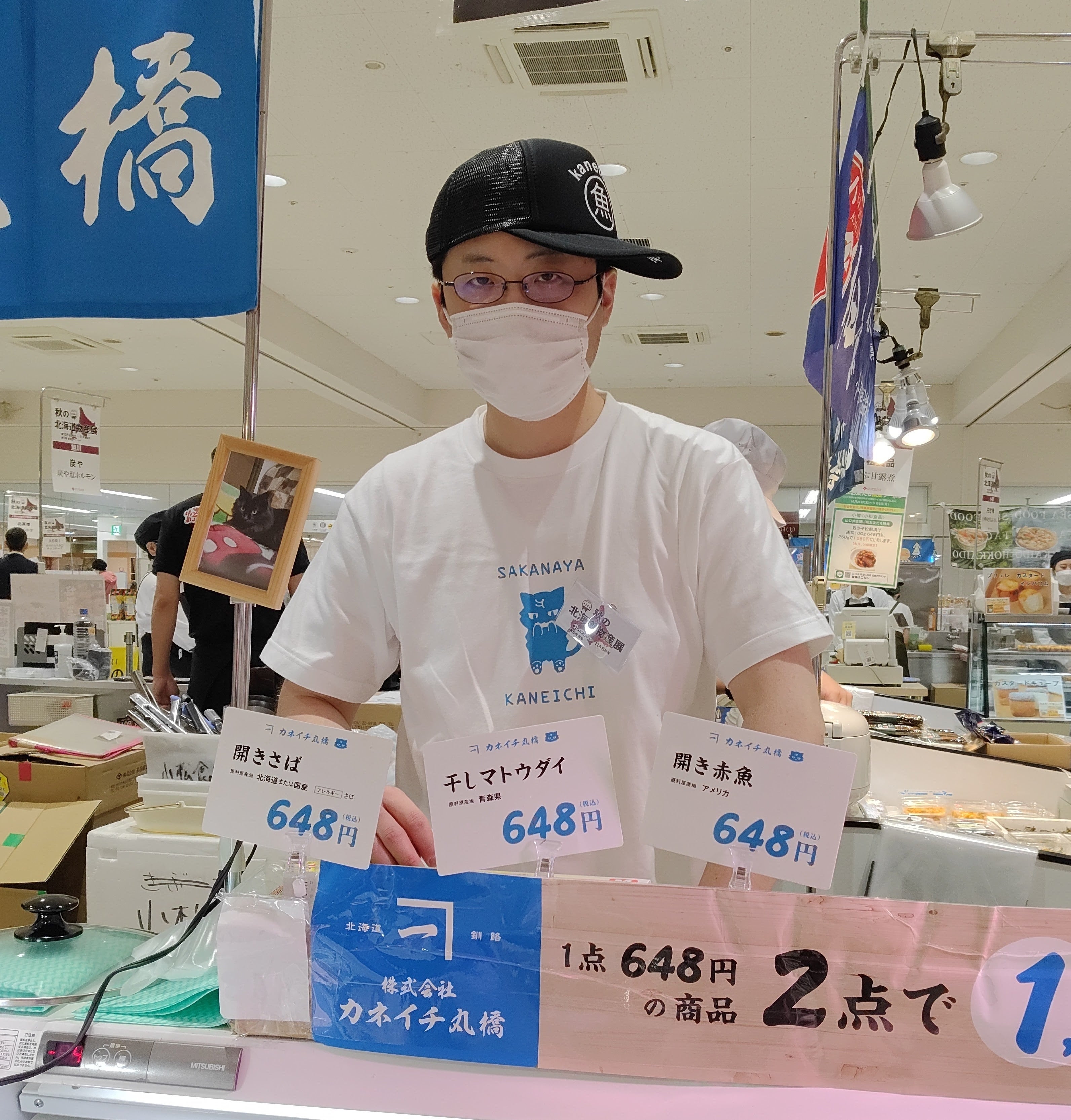 株式会社カネイチ丸橋という会社があります。こちらは私の父が代表取締役社長として経営し、水産物製造加工・卸売業を現在は行っております。私は元々、2016年12月からこちらの会社の専務取締役として従事しておりましたが、2022年12月31日をもち、個人事業主として独立し、「カネイチ丸橋直売店」として店内間借りにて、小売業を開始させて頂きました。お取り扱いさせて頂いている商品としては約50種類、干物、刺身、魚卵、生珍味などを真空パック仕様にて、冷凍販売をさせて頂いております。