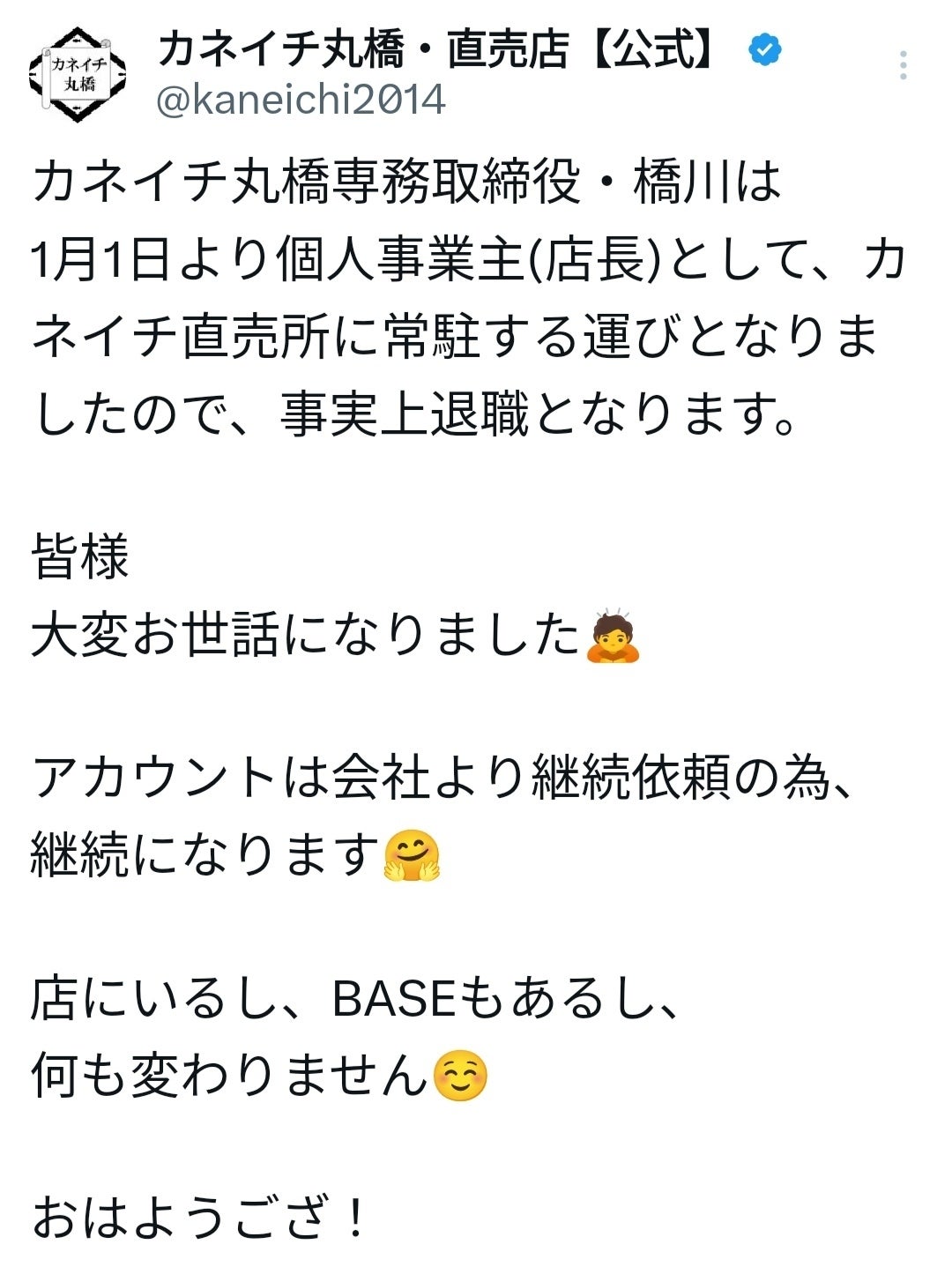 2024/01/15 16:36【御礼のメール】、【直筆の手紙】、【ステッカー入直筆の手紙】のリターン返礼を完了しました!プロジェクトをご支援頂いた皆様、並びに応援して下さった全ての皆様へ。いつもお世話になっております、カネイチ丸橋直売店の橋川征知です。活動報告と致しまして、全リターンのうちの上記リターン返礼を完了させて頂いた事をご報告させて頂きます。2月の返礼予定だったリターンでもありましたが、真心込めて駆け足でご用意させて頂きました。現在、他のリターン返礼に関しましてもスタッフと共に準備を進めておりますので、引き続きお待たせ致しますが、どうかお待ち頂けると幸いでございます。また、【zoom】によるリターン返礼を受けられる方へのご案内につきましては、2月後半よりスケジュールを各皆様へご確認に参りますので、こちらも重ねて引き続きお待たせ致しますが、何卒宜しくお願い申し上げます。いよいよ改装の時が近づいて参りました。気ばかりが焦ってしまう胸中ではありますが、一歩ずつしっかり足並みを揃えて進んで参りたいと思います。引き続き何卒宜しくお願い申し上げます。長文になりましたが、お読み頂きまして誠にありがとうございます。令和6年1月15日 カネイチ丸橋直売店橋川征知 もっと見る