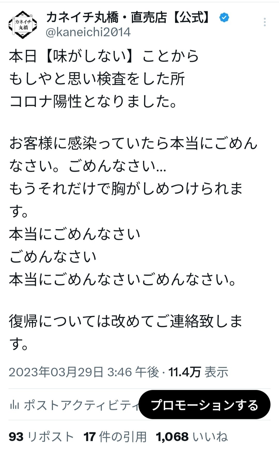 2023年3月末、私はついにコロナウイルスに感染しました。その日の売上で生計を立てているが故、休業の日々がどれだけの苦渋の選択を強いられるか、ご商売をされている方々にも強く共感があると思います。