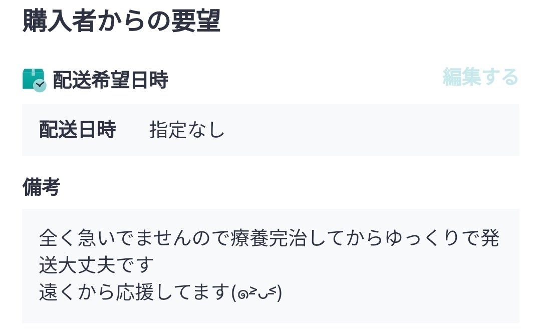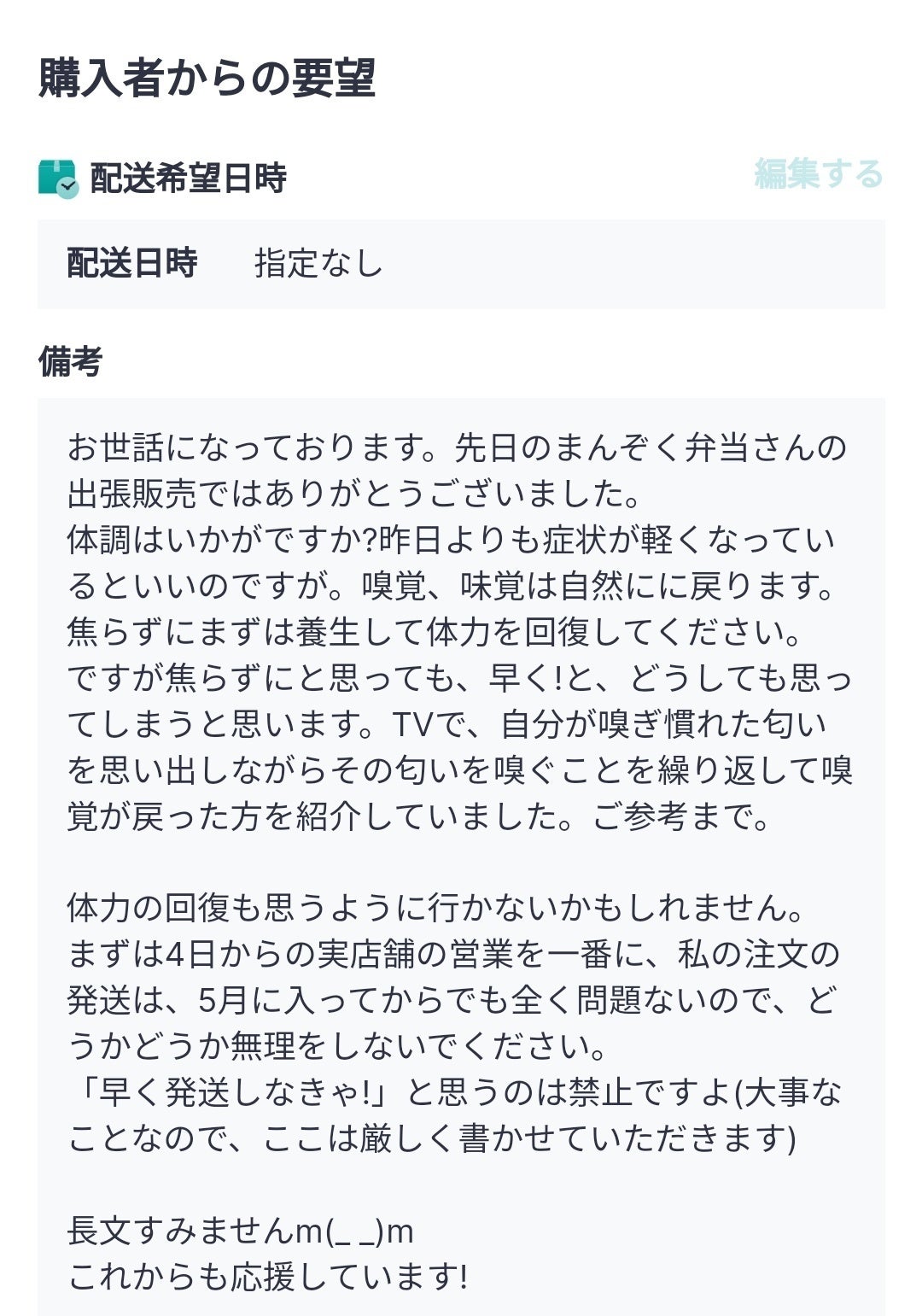 そんな時でした。SNSを通じて私の現状を知った全国の方々から、ECサイトに次々と応援メッセージが添えられたご注文が飛び込んできたのです。