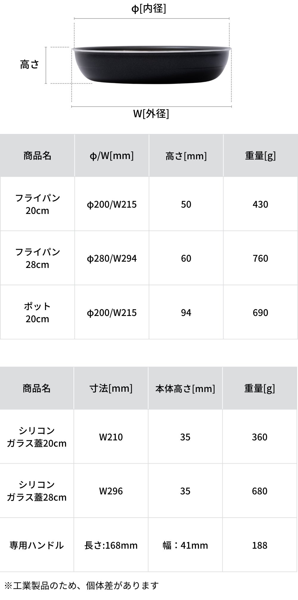 取っ手:フェノール樹脂、ガラス入りナイロン(50%)、ステンレス鋼、シリコーン樹脂(150℃)