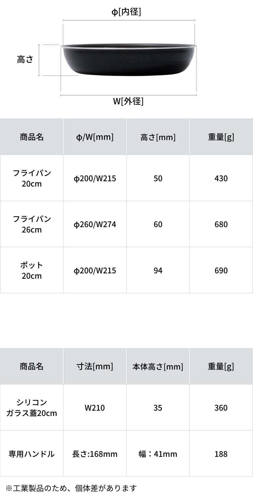 取っ手:フェノール樹脂、ガラス入りナイロン(50%)、ステンレス鋼、シリコーン樹脂(150℃)
