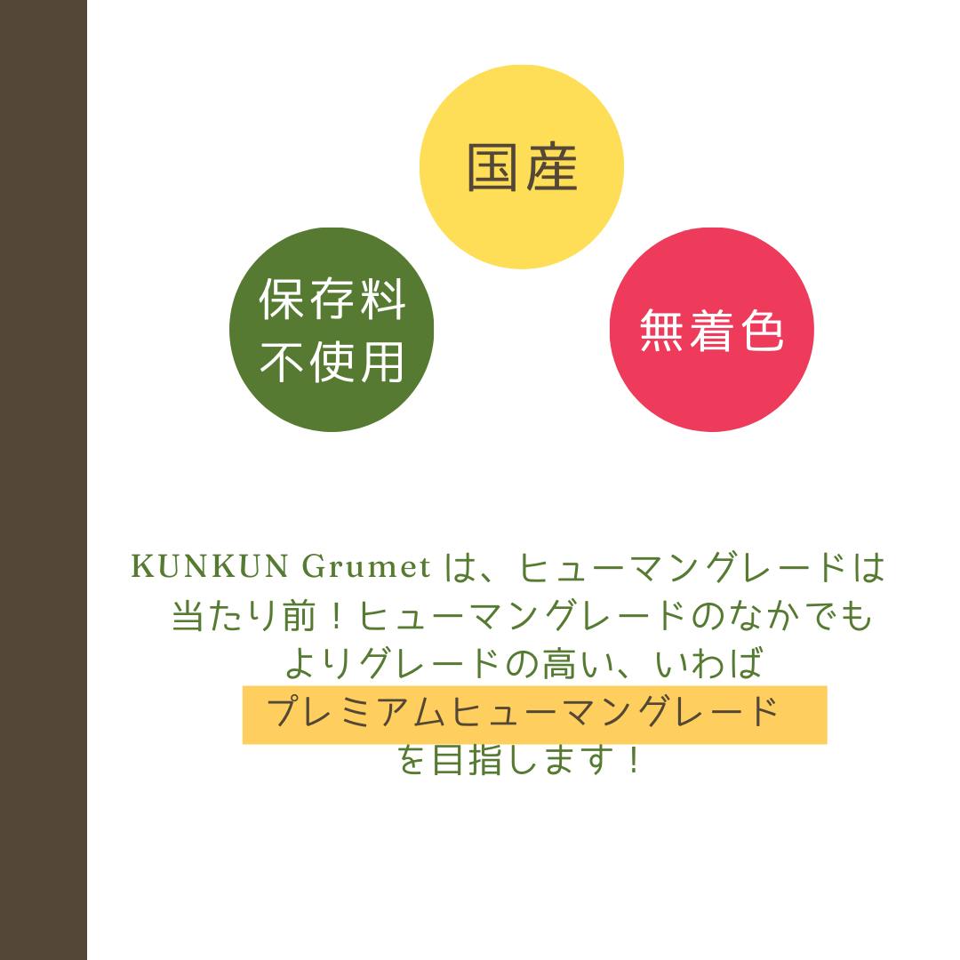 KUN KUN Gurometは、ペットの健康を第一に考え、安心できるおやつを提供することを目指しています。そして少しでもおいしく食べてほしいから、素材にもこだわります。