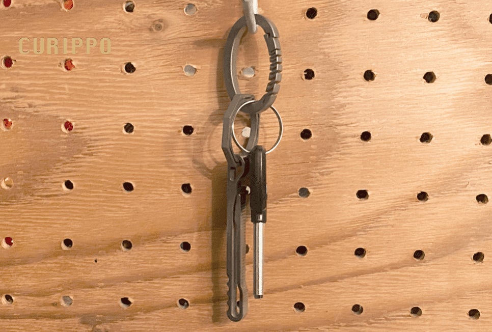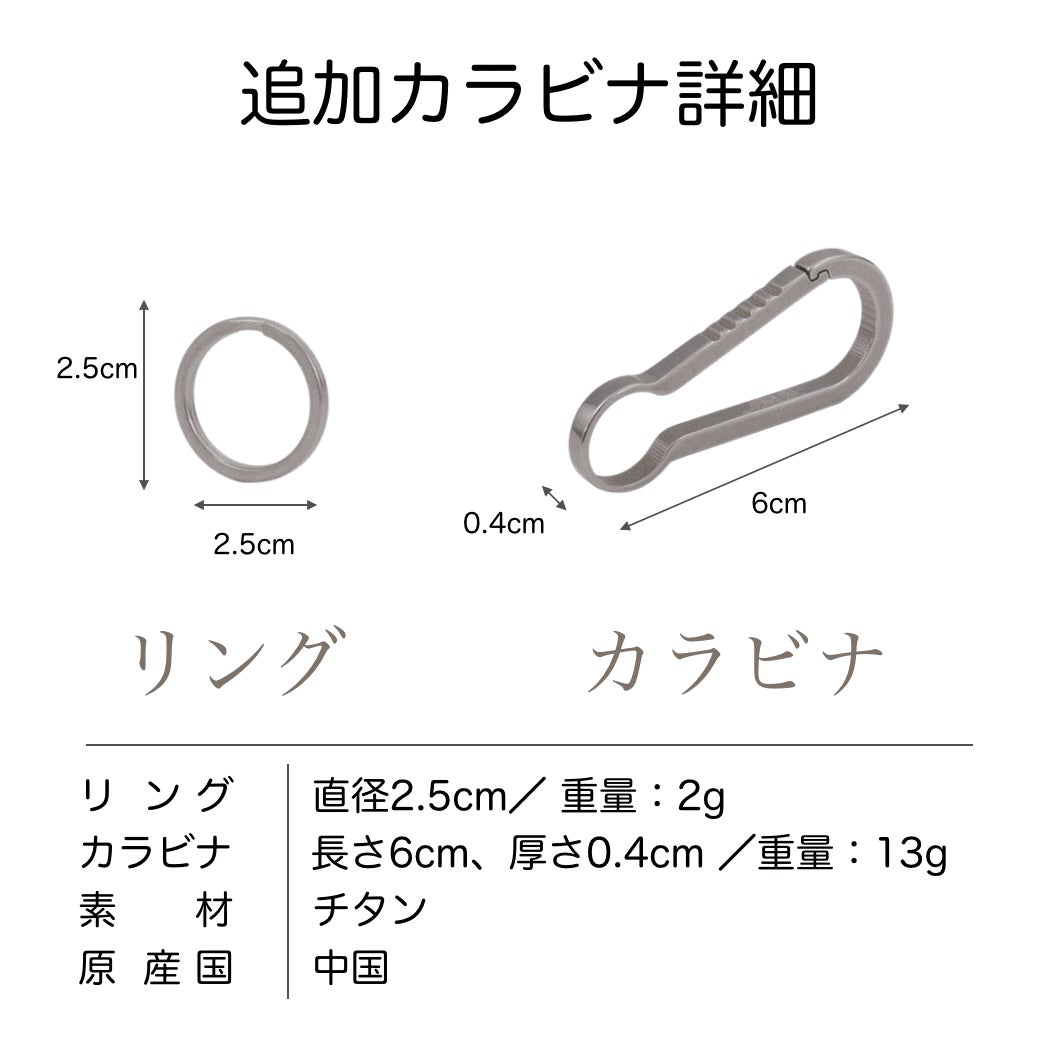 チタンの硬質性を生かした細工が美しいカラビナです。ラバータイプの鍵や車の鍵がつけ易いです。