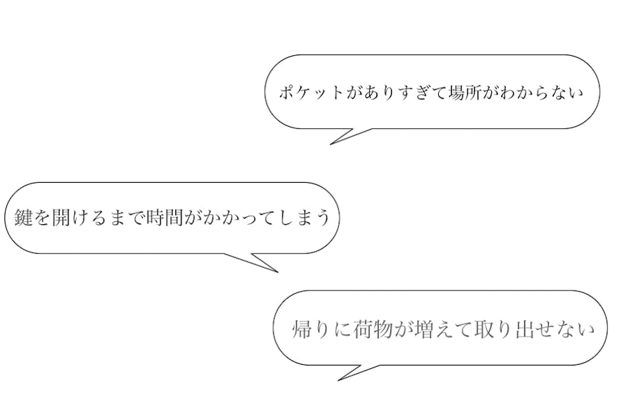ポケットが多いバッグはどのポケットに入れたかわからなくなり、帰りに荷物が増えて鍵がバッグ底にあり取りにくくなってしまったり。。