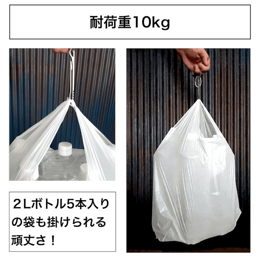 細いクリップですが10kg(2Lのペットボトルを5本)入れた袋を掛けられる位頑丈。