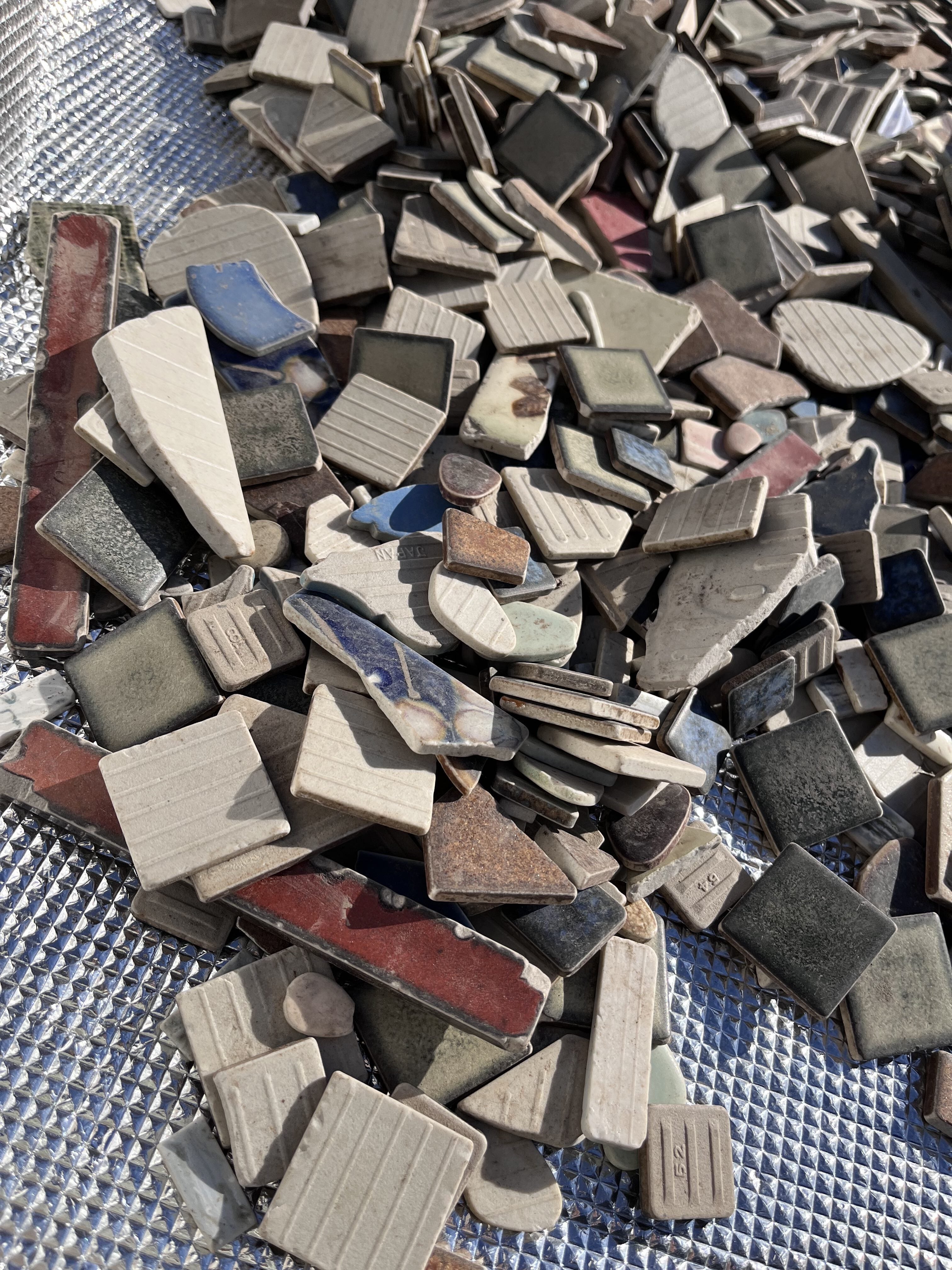 建築素材として活用されるタイルなので、建物が完成して余ってしまったタイルは使わずに保管されたり廃棄されることもあるそうです。タイルを作る過程で釉薬がくっついたりして販売することができないタイル。また、古い物件を取り壊した時にでてきた、昭和時代のレトロなタイル(←めっちゃ素敵で貴重です。)