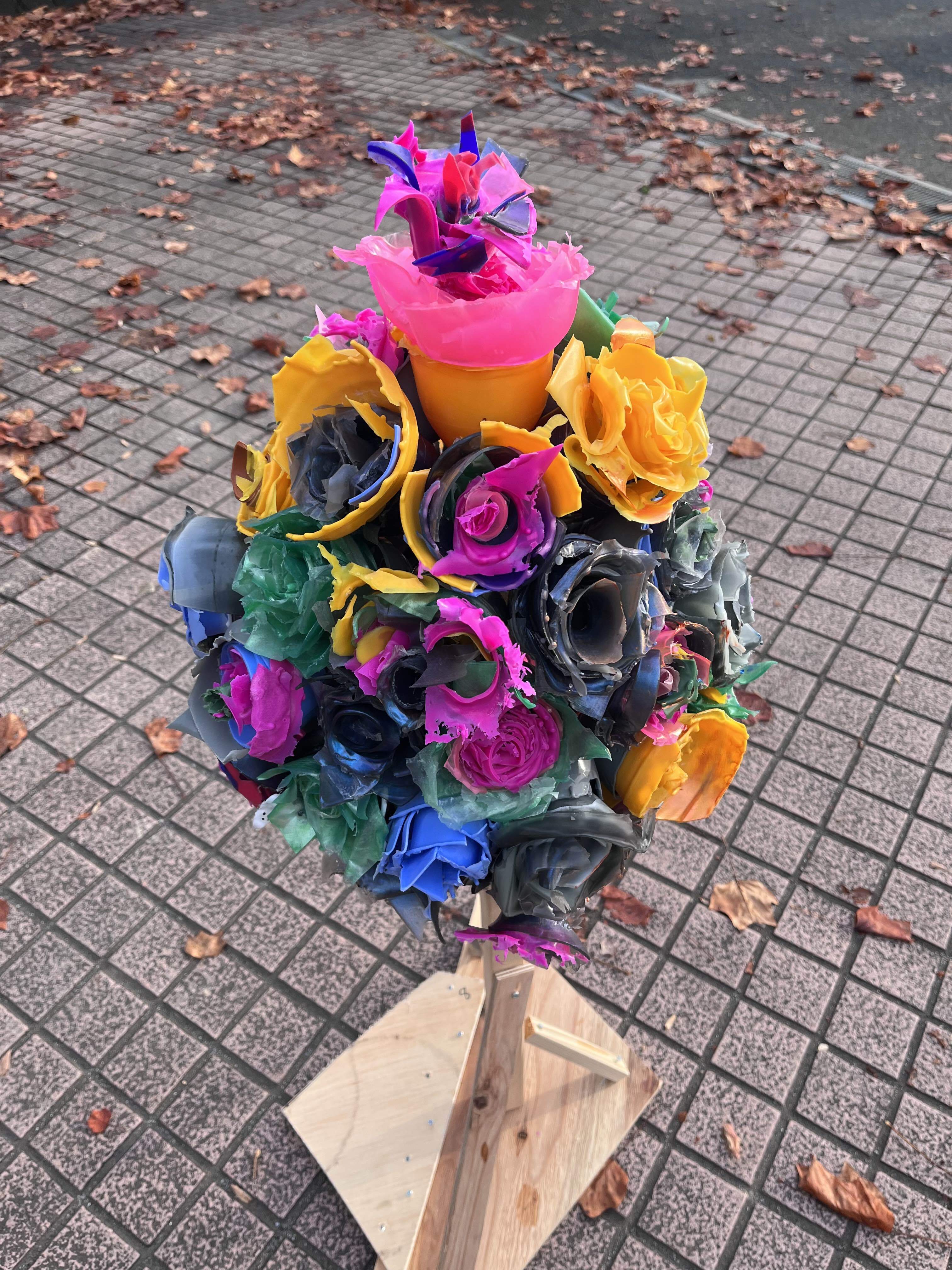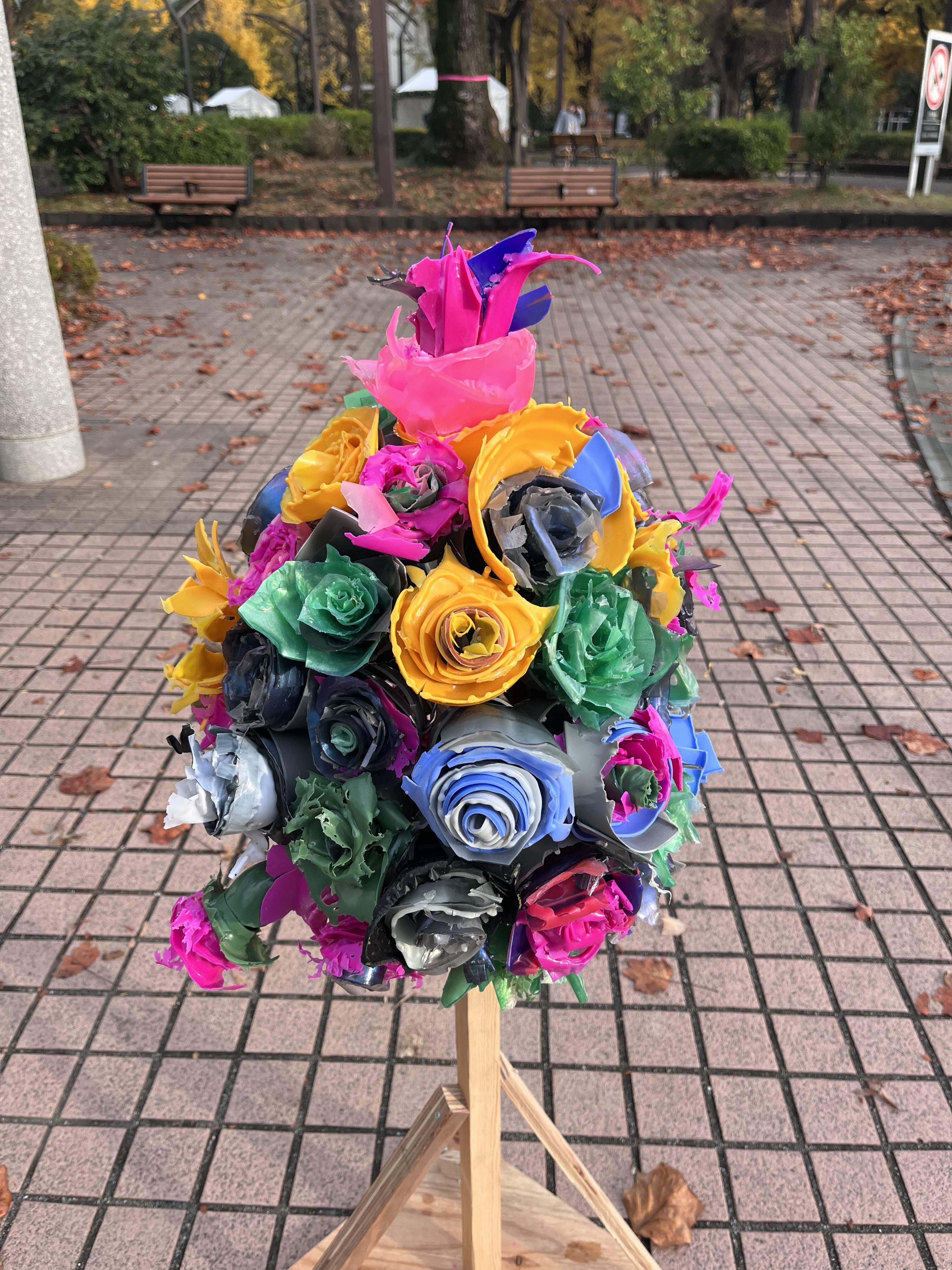 片桐さんを中心にみんなで作った薔薇の花がたくさんさいています。