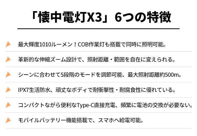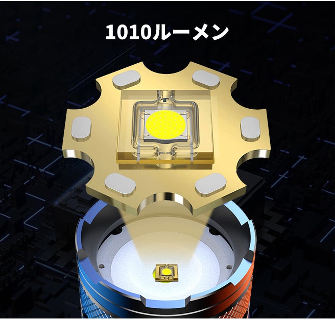 伸縮ズーム搭載することで、ライトの照射距離・範囲を自由に調整可能です。手元はもちろん遠距離もはっきりと照らしてくれました。