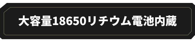 大容量7800mAh 18650リチウムバッテリーが内蔵されており、最大光量時であれば最大約8時間の連続点灯が可能!