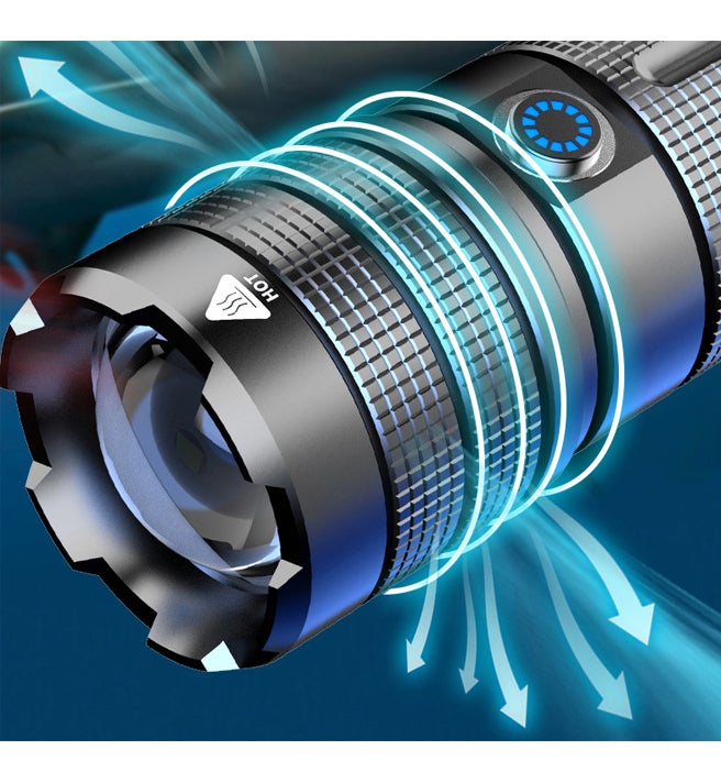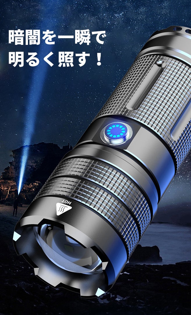 電源ボタンを押すだけで、高輝度、中輝度、低輝度、フラッシュ、SOS、用途に合わせて5つのモードを切り替えすることができます。