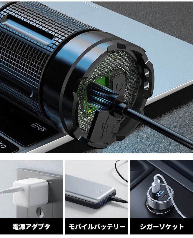 Type-C充電式で繰り返し充電が可能です。電池交換の手間を省きます。