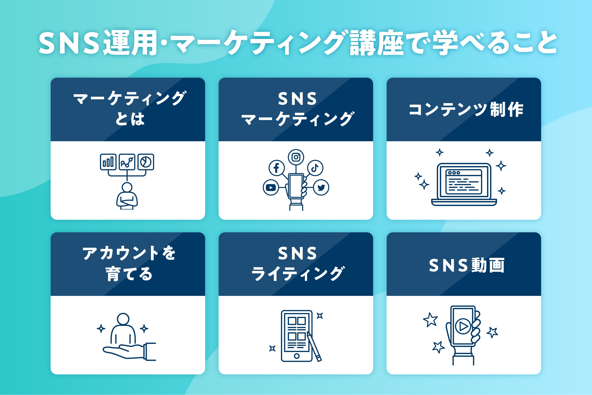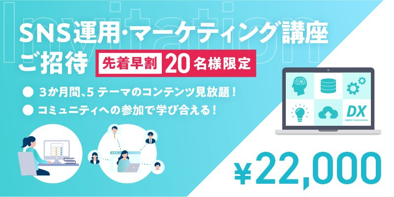 そこで今回新たにSNSマーケティングのスキルを身につけることが出来るオンデマンド講座「SNS運用・マーケティングコース」を立ち上げます!