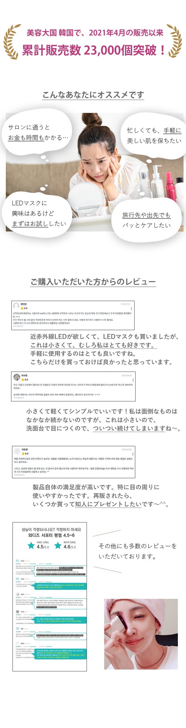 LEDをつかったものは波長が強すぎるとあまりよくないし、肌にちょうど良い強度のものを長年研究してきました。日本の皆様にも、気に入っていただけることを願っています。お気づきの点がございましたら、ぜひお聞かせいただけますと幸いです。どうぞ宜しくお願いいたします。