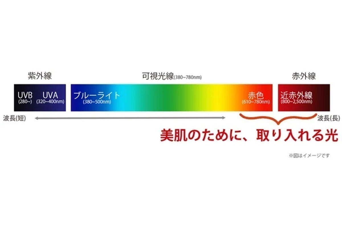 660nmの波長は、肌にハリと弾力を与え、いきいきとした肌に魅せることができるとされています。