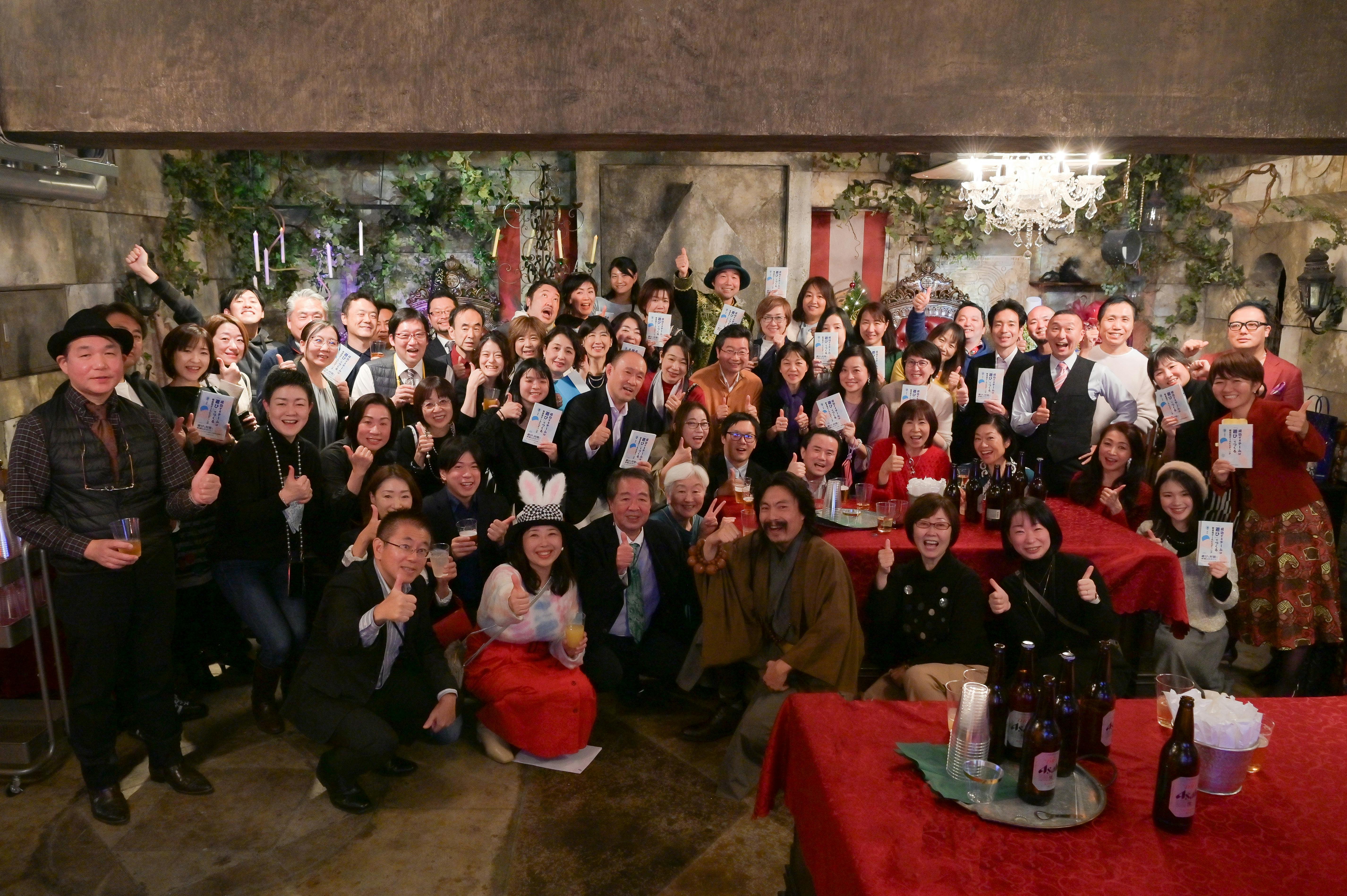 2023/12/27 15:00活動報告が大変遅くなってしまったのですが、12月7日(木)夜!アイデアの城にて出版記念パーティーを無事に終えました。当日は70名満席。出版プロデューサーからの励ましの言葉に始まり、ゲームを楽しみ、応援ソングのお披露目がありました。ステキな体験を共有できたこと。このような形で出版をお祝いの形にできたこと。心から感謝しかありません。遊びには、純粋な心の状態としての「遊び」と、ゲームの「遊び」の2つがあります。この2つを活かしあいながら、人間関係やチーム課題に向き合ってゆきたい。遊びは地球を救う今回、降りてきた言葉です。そして、4社の協賛により、世界初のブックフラワーも飾ることができました。とってもきれいでした。ますます、ワクワクする世の中つくるに邁進します。みなさん。本を手にしてしまった、ということはもう「遊び」を使える仲間達です。人生は遊びです。とことん楽しみましょう。緊張感に満ちた社会を緩めて、夢を描くワクワクする心をみんなで育ててゆけたら、と願っております。この記念パーティーの様子はアチーバスジャパンのHPにも掲載されました。どうぞご覧ください。「成功するチームは遊びでつくる」出版記念パーティーの様子https://www.achievus-japan.com/project/book/「本を遊ぶ企画」まだまだ始まったばかりです。お楽しみに~! もっと見る