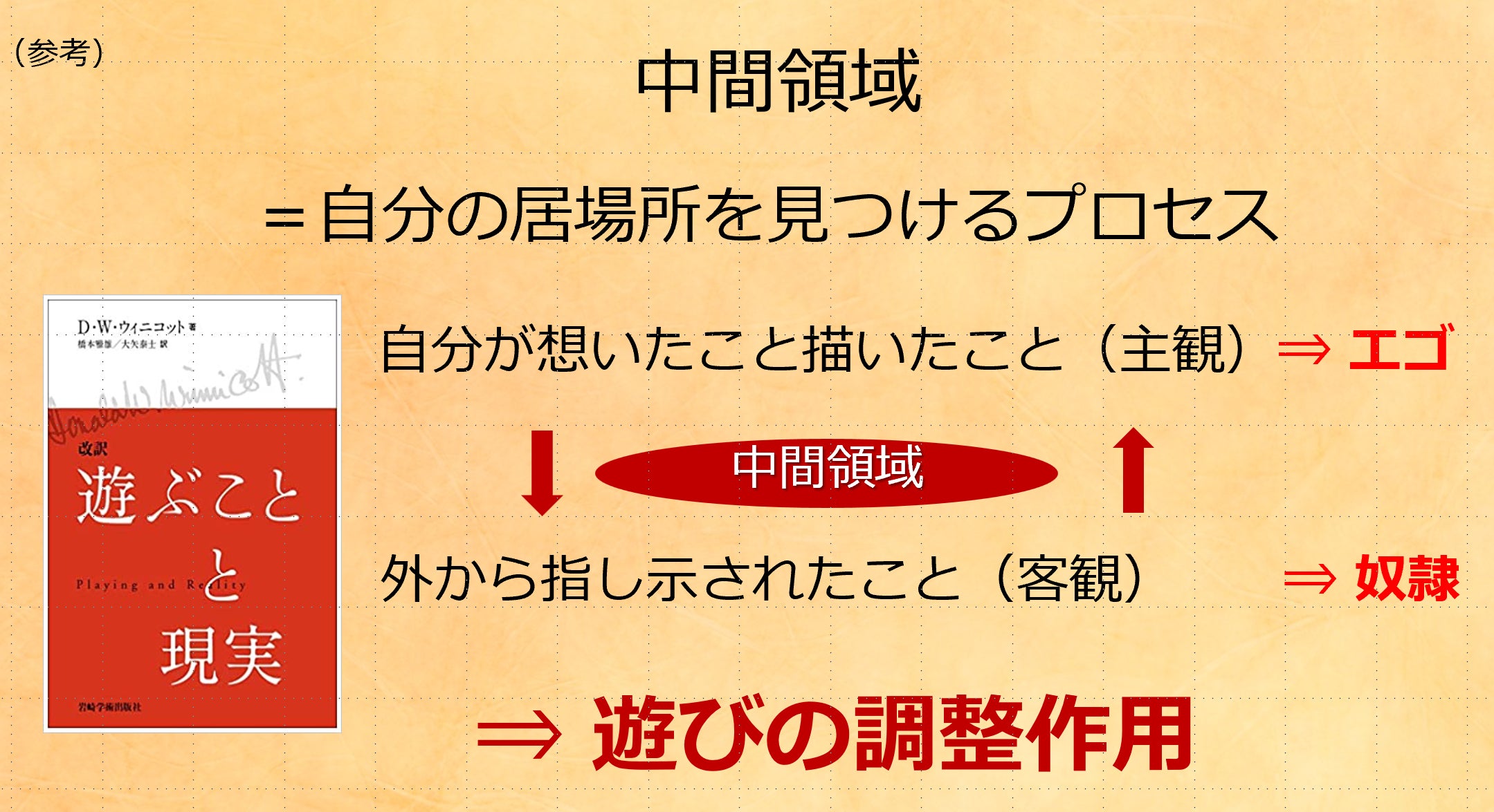 これは、「遊ぶことと現実」という精神分析の本を読んでいて、洞察した内容です。