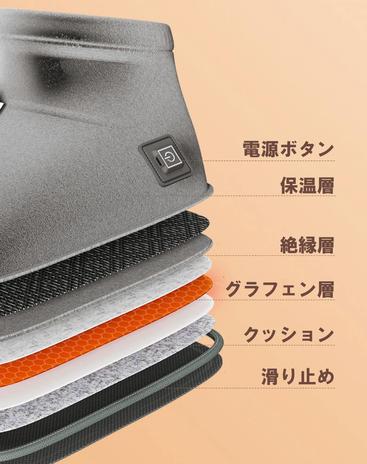 「熱伝導も良いとされている」ノーベル賞を受賞したグラフェン物質を採用!足が冷たいと思った時から速攻であなたの足を包み込みます。更にUSBタイプでアウトドアでも勤務先でもいつでも気軽にお使いいただけます!